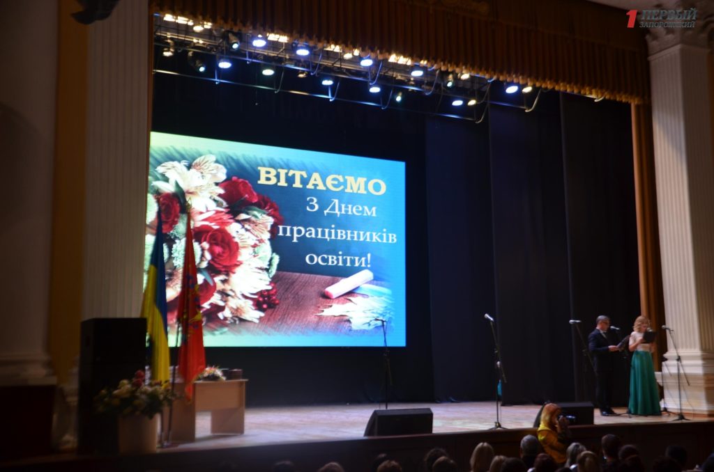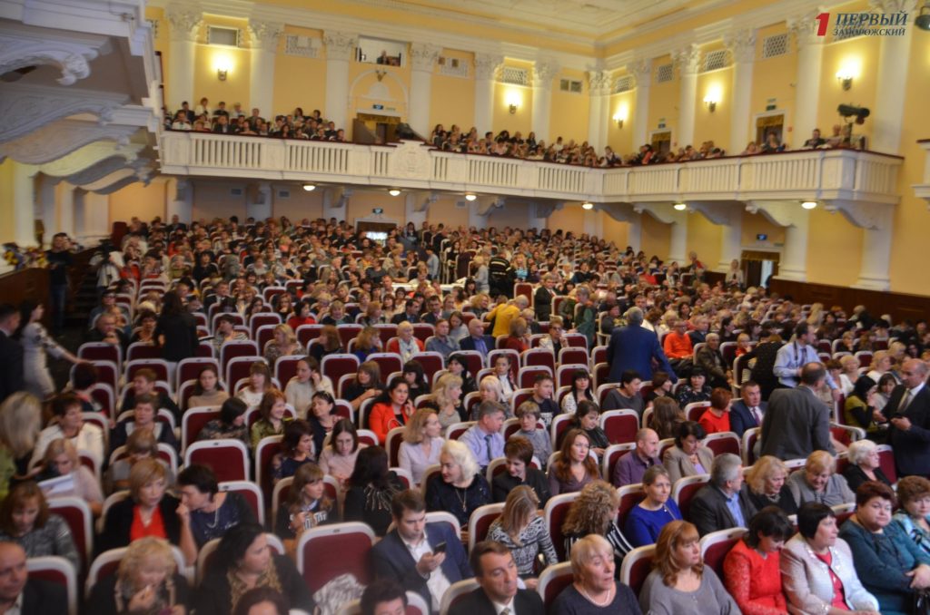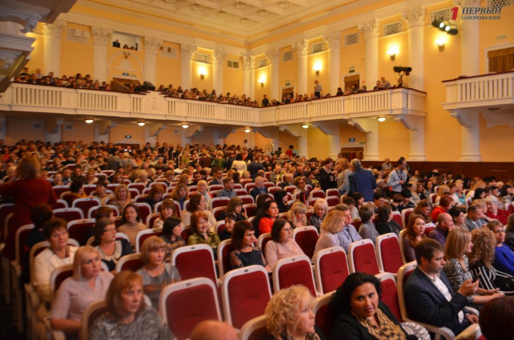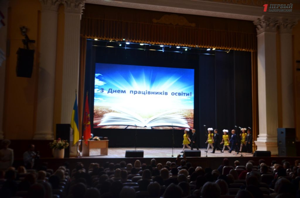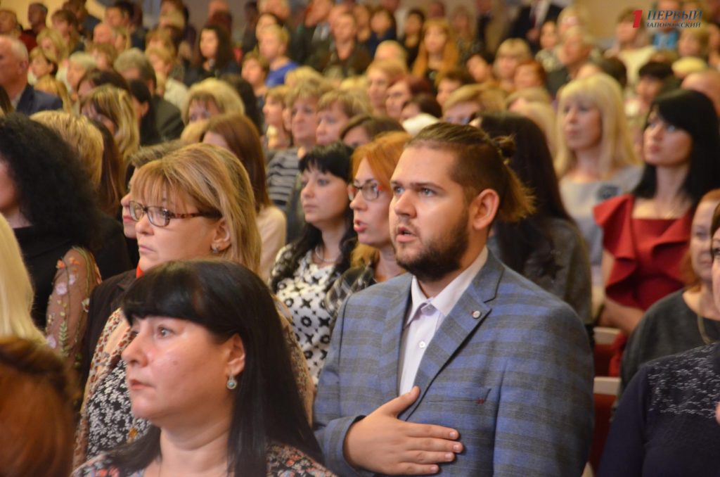 На праздничном мероприятии собрались сотни учителей и работников образования со всей Запорожской области, чиновники, а также неравнодушные горожане.