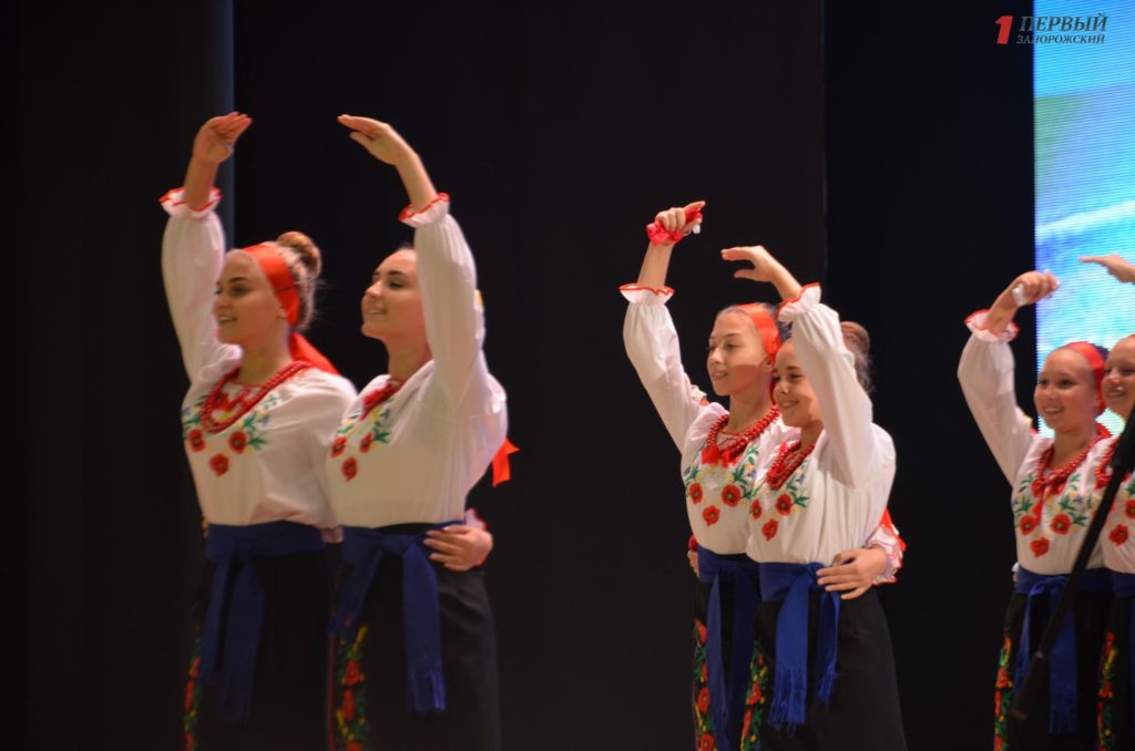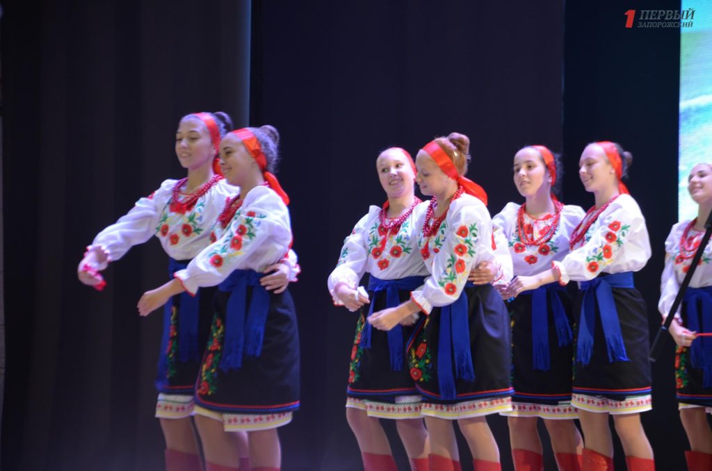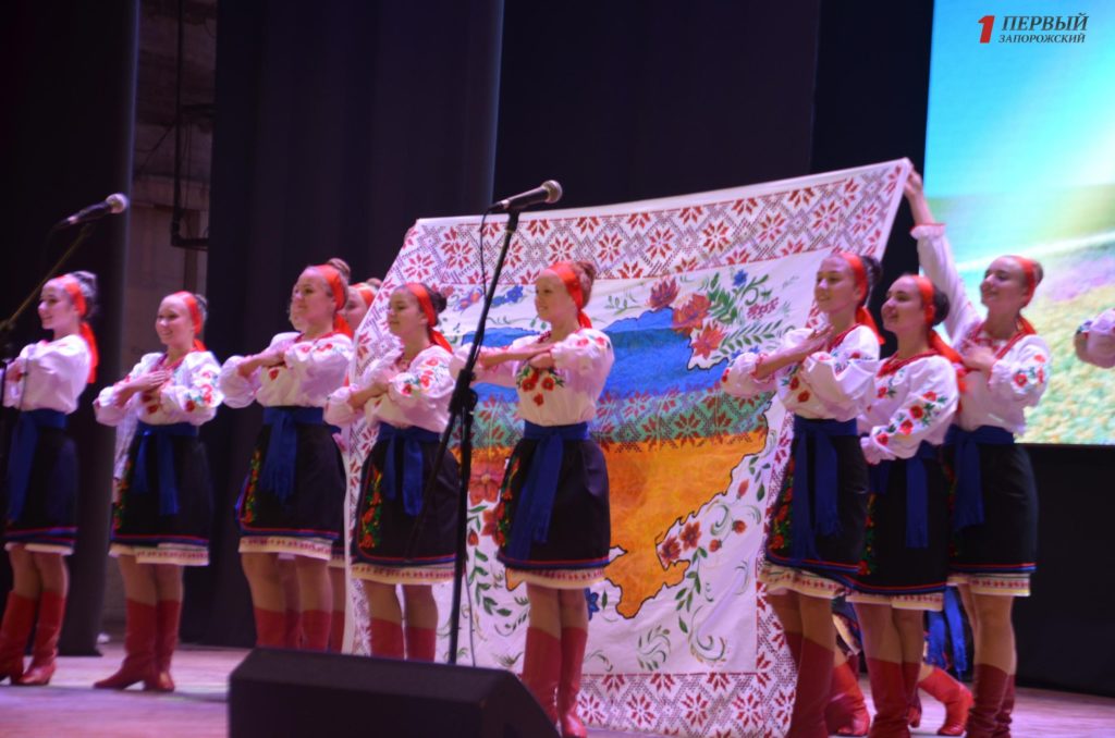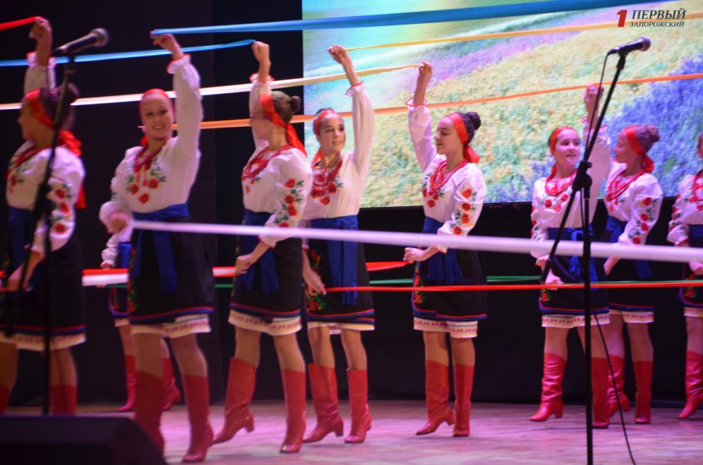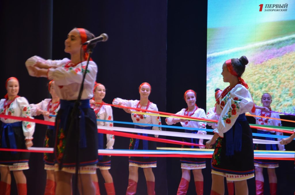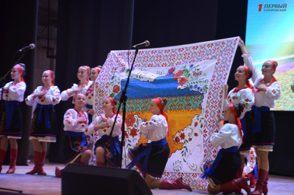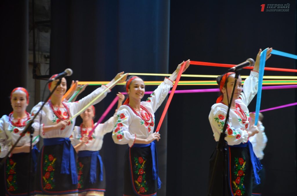 Зрители наслаждались танцевальными, вокальными номерами и оригинальным перформансом с использованием разноцветных лент и вышитой картой Украины.