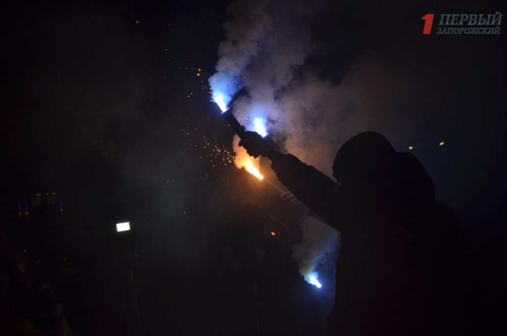 Небольшая группа активистов собралась с банерами «Пам’ятай героїв Крут» и «Крути, Крути, Вас не забути. 101. Пам’ятаємо» около Запорожской мэрии. Здесь участники шествия подожгли факелы и прошли колонной до площади Героев напротив Запорожской ОГА. Колону сопровождали сотрудники полиции, которые обеспечивали правопорядок во время проведения акции.