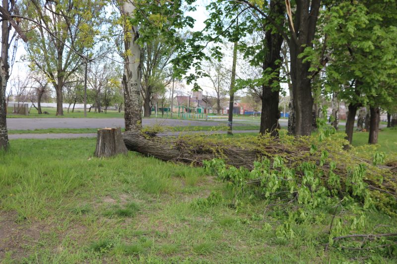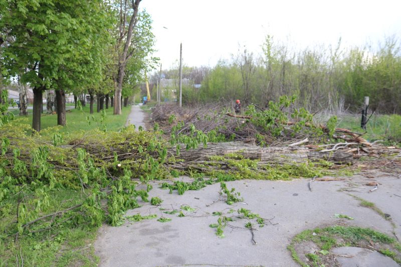 «Здесь работали молодые ребята на «Газели», но никакой специальной техники у них не было. Сказали, что они с «Зеленстроя», но правда это или нет, мы не знаем. Спецформы на них не было. С утра они обрезали другое дерево возле школы, а потом приступили к этому большому тополю. Изначально они якобы планировали завалить его в другую сторону, где нет проводов, но не получилось. Использовали для наклона канат какой-то, а это грубейшее нарушение техники безопасности. Хорошо, что еще никого не завалило. Итог вы видите – столб и провода повалены. Мы обратились на «Запорожсталь» и спасибо еще этим ребятам, что так быстро приехали и теперь занимаются нашей проблемой, а – поделился местный житель Владимир Ильченко.