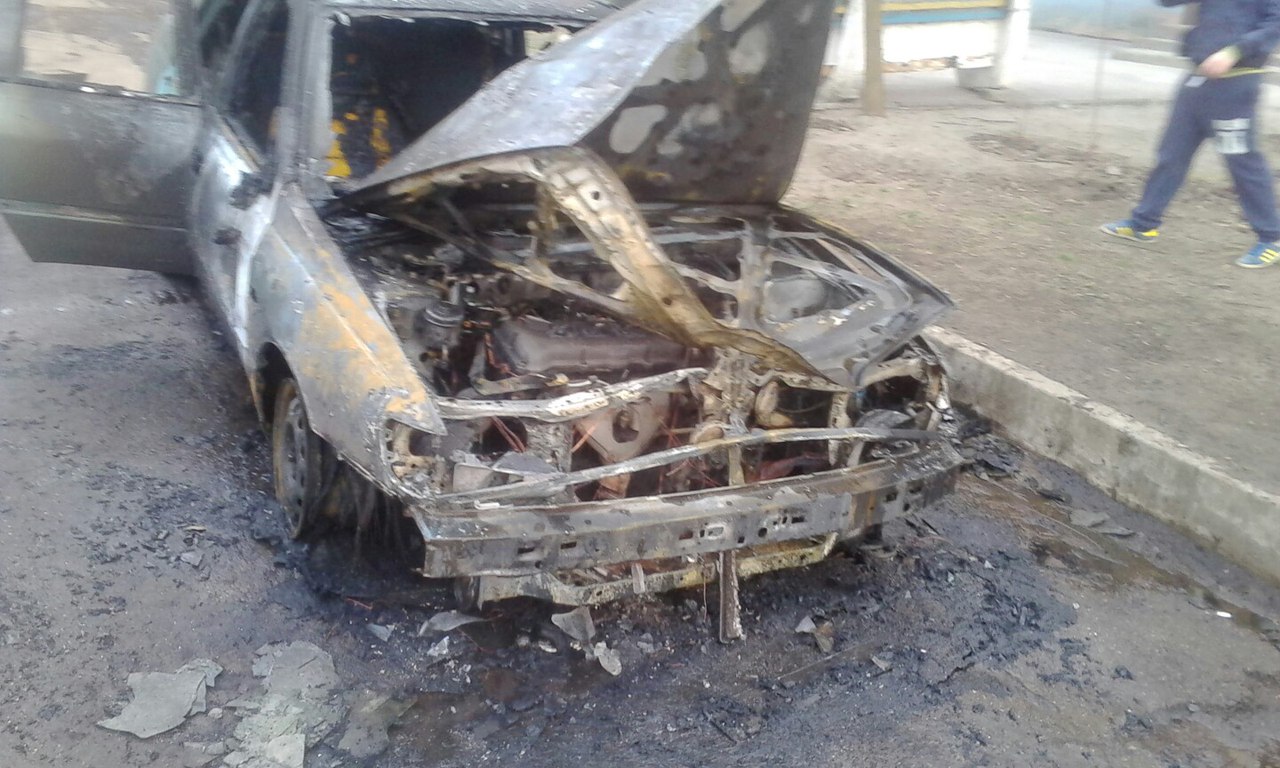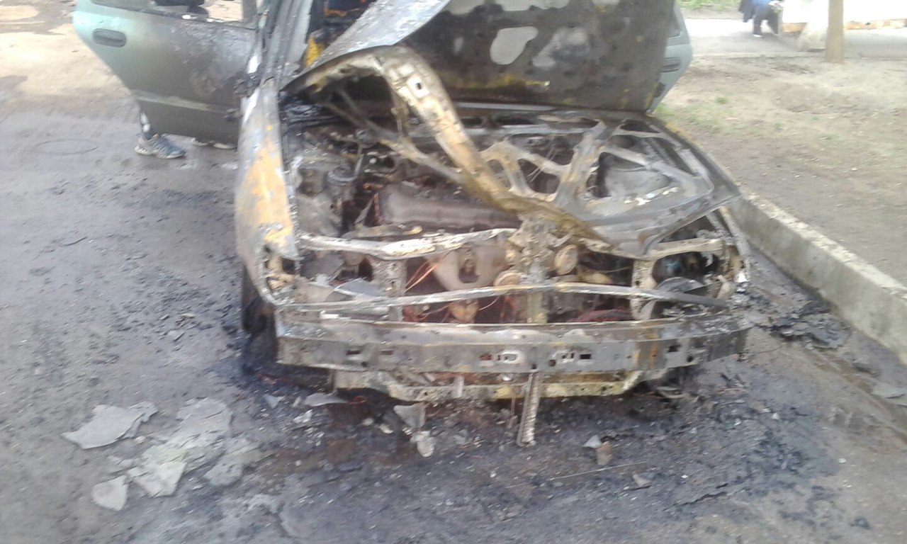 В Запорожье полностью сгорел автомобиль Nissan - ФОТО