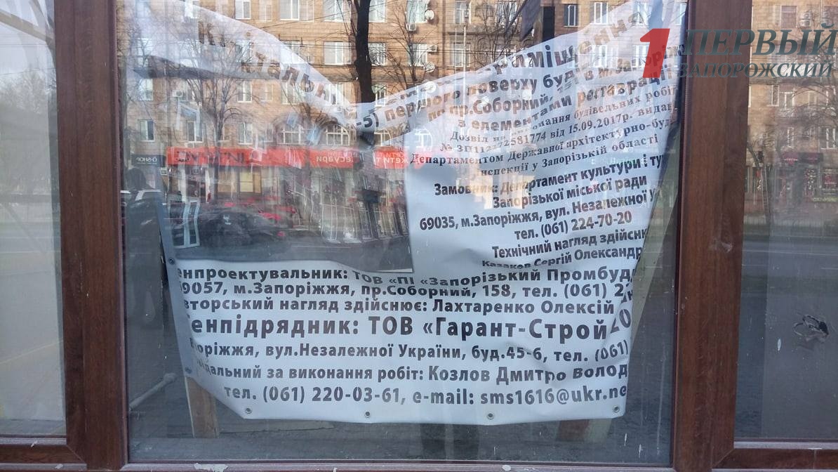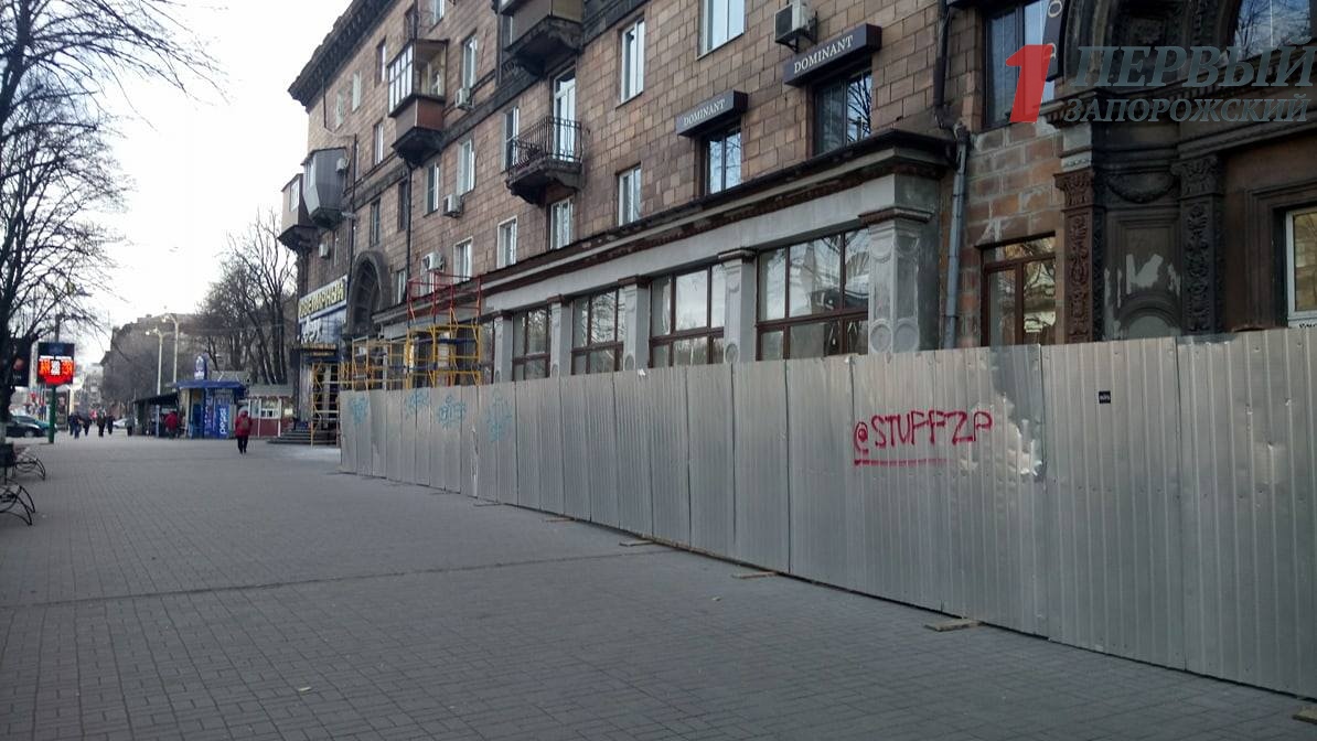 На центральном проспекте Запорожья на улице Соборный,51 полным ходом идет реконструкция нового коммунального учреждения «Туристический информационный центр» на месте бывшего книжного магазина «Современник».