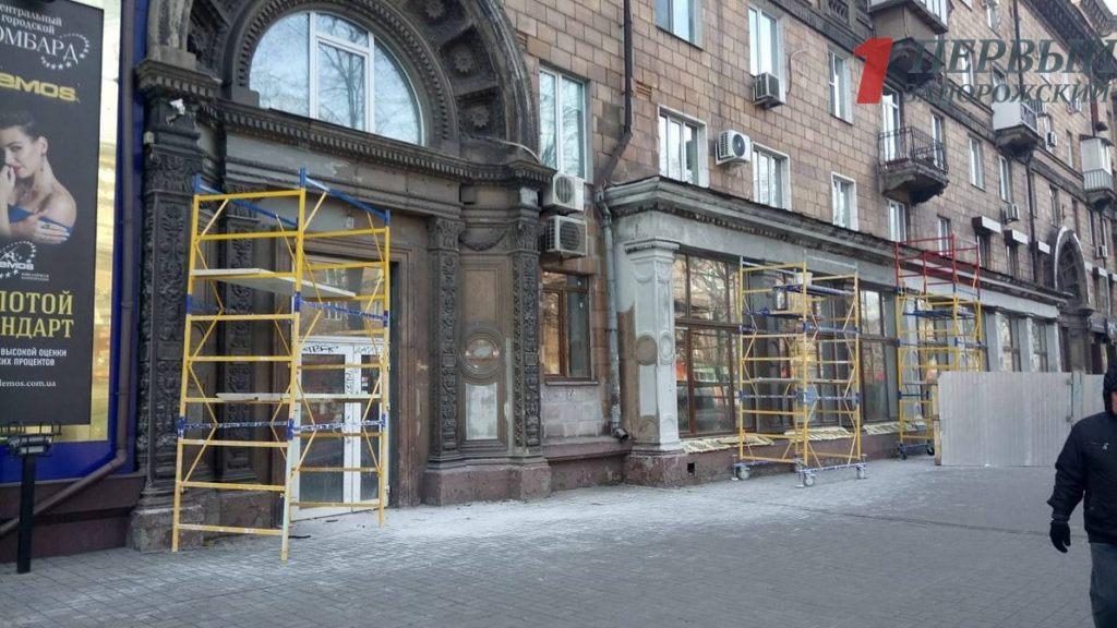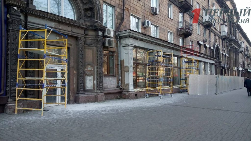 На центральном проспекте Запорожья на улице Соборный,51 полным ходом идет реконструкция нового коммунального учреждения «Туристический информационный центр» на месте бывшего книжного магазина «Современник».