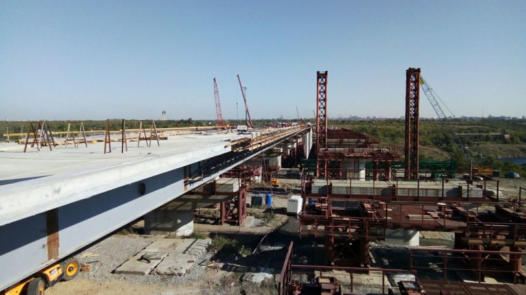 В данный момент строители занимаются возведением мостового перехода между правым берегом и островом Хортицей через Старый Днепр на остров Хортица.