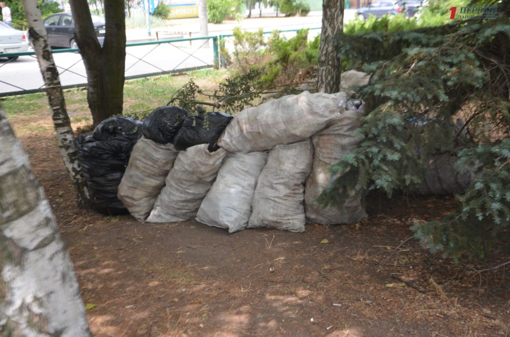 На зеленой зоне теперь красуются с десяток мусорных пакетов. По каким-то необъяснимым причинам, коммунальщики посчитали, что мусорные отходы очень важно складировать прямо посредине парка, а местные жители расценив это место, как свалку, добавили туда еще немного мусора.