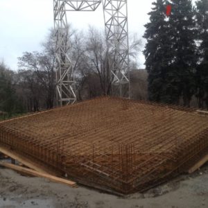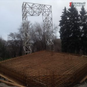 Из основы памятника пока мы видим девятиметровую расколотую металлическую арку и неоконченную наклоненную плиту, которая состоит из металлического перекрытия. Металлические конструкции для основы памятника уложили в двух направлениях для подготовки так называемого «венца», который является основой, содержащей стержни арматуры. Финальным этапом должна была стать заливка бетона, но, по словам подрядчика в последние теплые деньги шел сильный дождь и заливать бетон нельзя, а значит работы будут на время приостановлены.