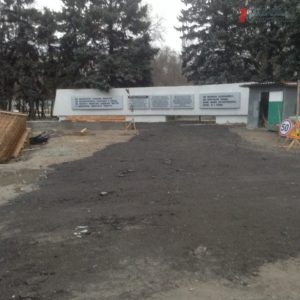 На сегодняшний день бригада строителей уже успела провести земляные работы (при этом рабочие выкорчевали даже зеленые ели), положить плитку на пешеходной зоне и вокруг мемориала, сделать ступеньки и отреконструировали бетонные плиты с информационной доской, которые остались от предыдущего мемориала.