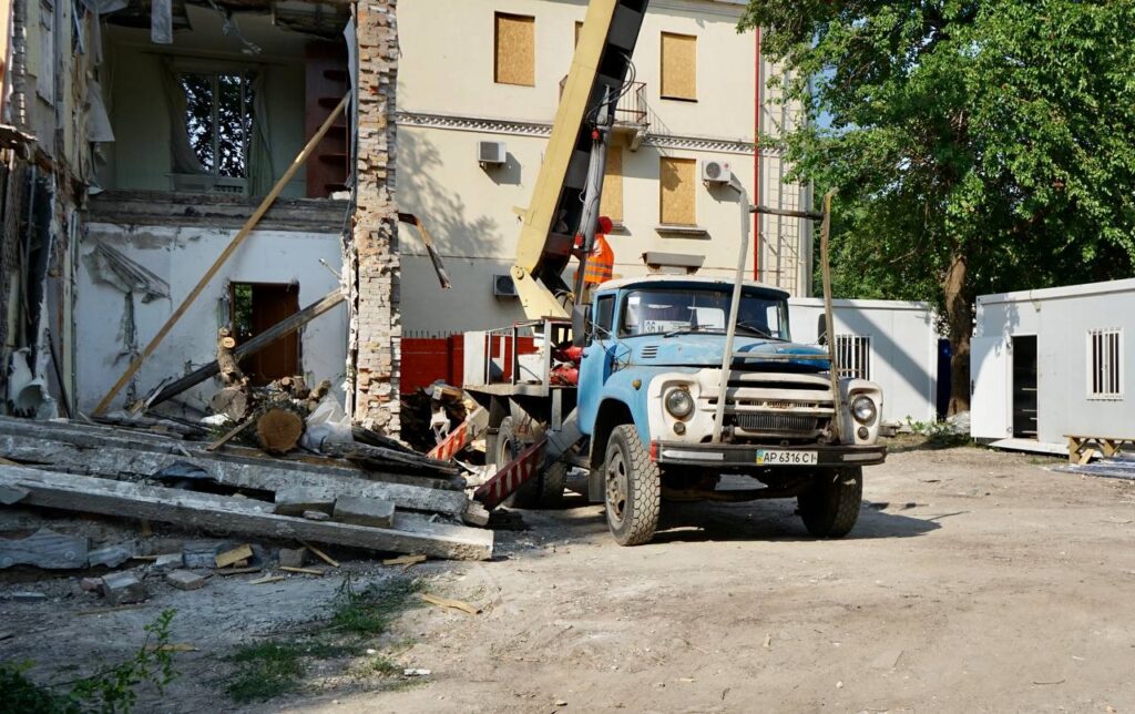 Як раніше повідомляв «Перший Запорізький», вже розпочато роботи з відновлення частково зруйнованого будинку на проспекті Соборному. Згідно з проєктно-кошторисною документацією, загальна вартість відновлювальних робіт складатиме 141 мільйон гривень. Повна реконструкція будівлі триватиме, орієнтовно, два роки і буде розділена на декілька етапів.