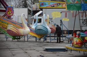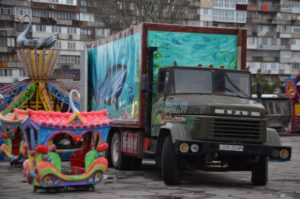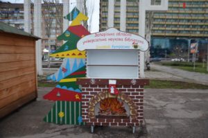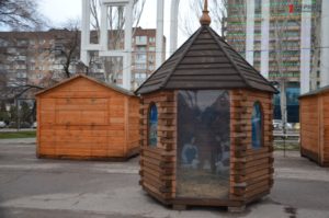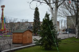 Одновременно с площадью Маяковского, последние подготовительные работы к открытию областной елки проводят на площади Фестивальной. Здесь внутри новогоднего городка расположилась детская зона с лунапарком, рождественский домик с библейскими персонажами, зона для букккросинга в виде полочки под камином, светящийся шар.