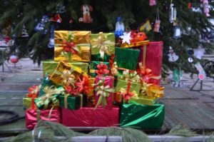 Под главной областной елочкой уже находятся большие подарочные коробки, завернутые в праздничную бумагу.