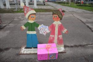 Кроме домика Деда Мороза здесь расположены еще несколько детских-локаций лабиринтов, в которых будут работать аниматоры. Сцена в этом году расположилась не параллельно проспекту, а сбоку. Главную елку украсили новогодние шары, игрушки с зимней тематикой, иллюминация.