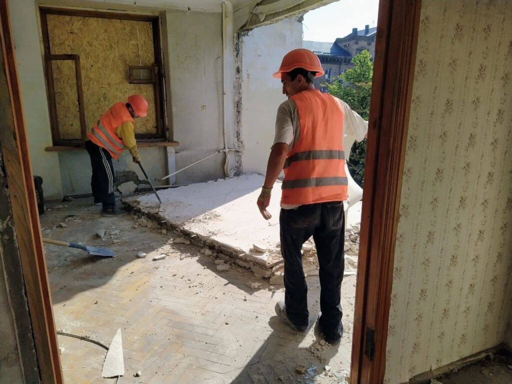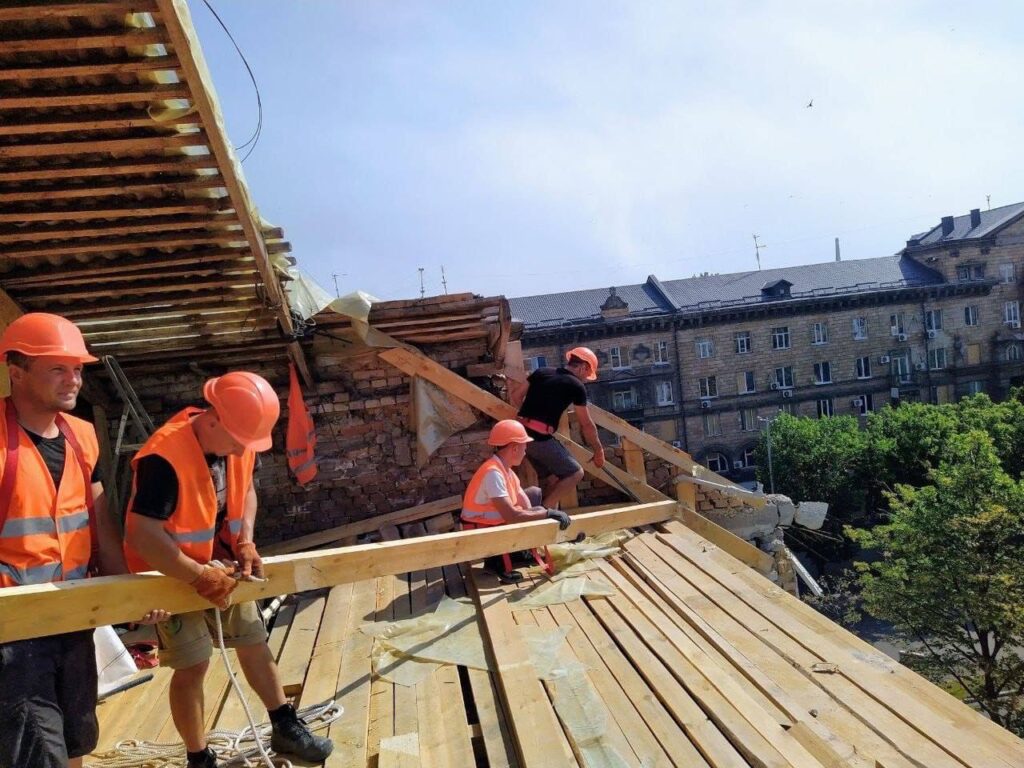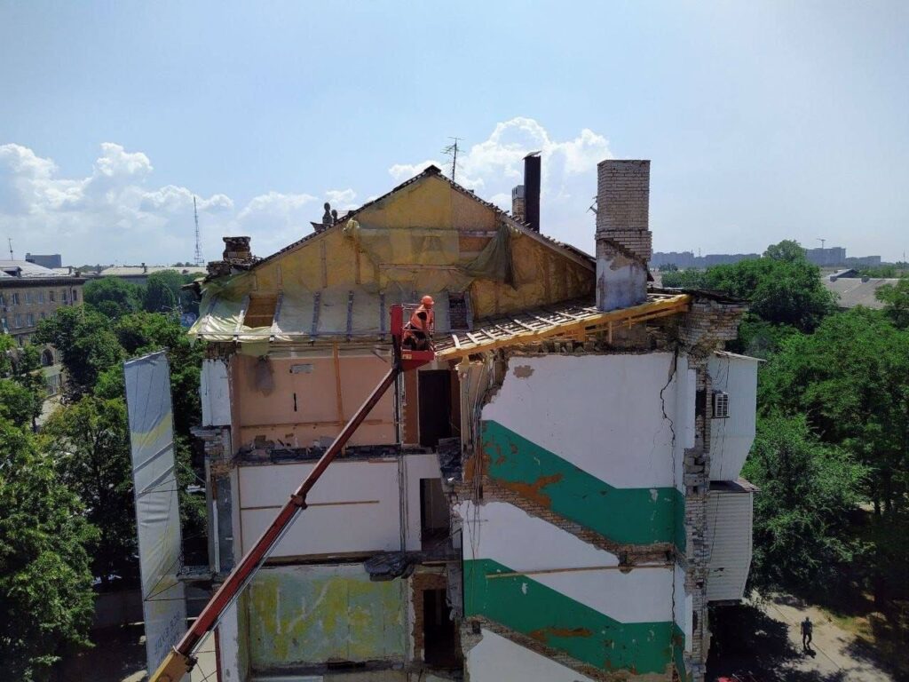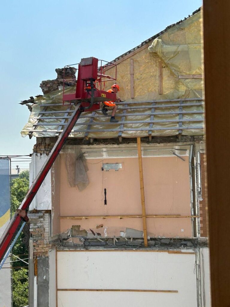 На Кияшка, 22 демонтується покрівля, мурування зовнішніх стін та штукатурка у квартирах і підʼїздах. Наступного тижня розпочнуться підготовчі роботи по відновленню несучих стін.
