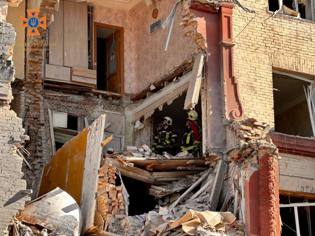 У Запоріжжі станом на 16.00 триває ліквідація наслідків ракетного удару по 5-поверховому будинку.