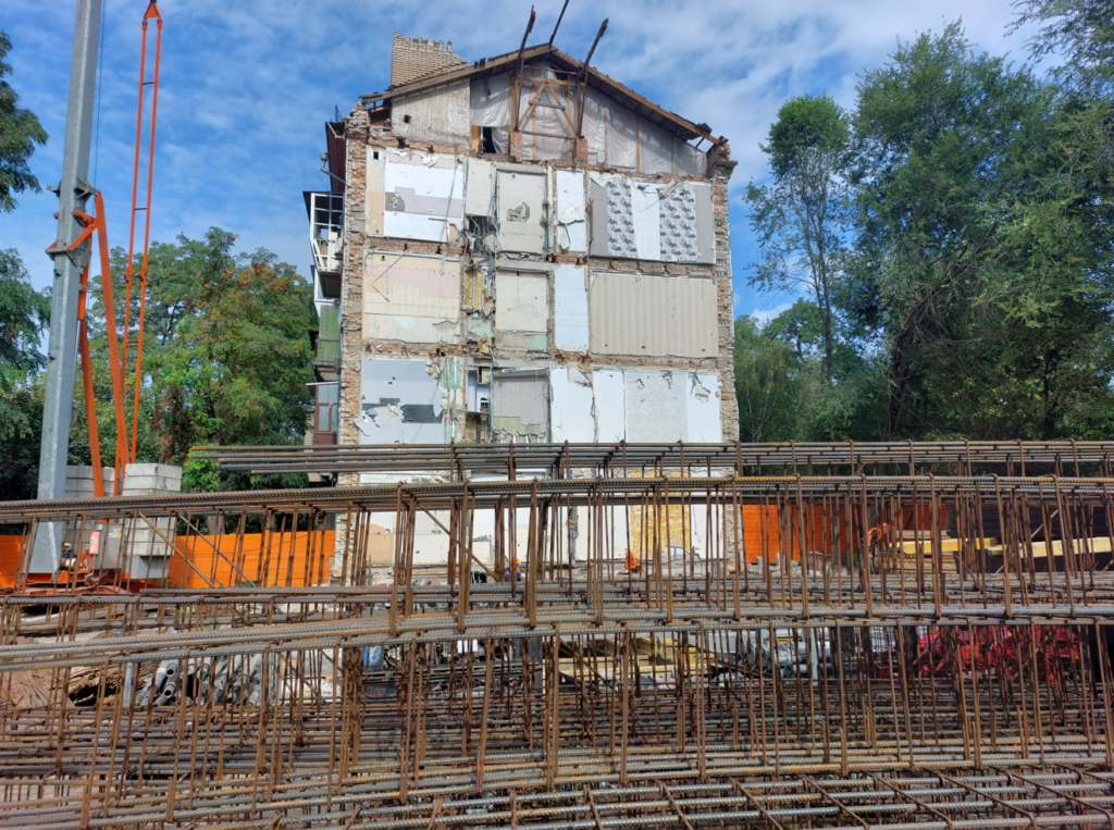 Як розповів на будівельному майдачнику в.о. мера Анатолій Куртєв, наразі вже завершені бетонні роботи у підвалі. Найближчим часом планується бетонування плити перекриття між підвалом і першим поверхом. Після завершення цих складних робіт відновлення поверхів будівлі відбуватиметься швидше (як у будинку на проспекті Соборному, де за актуальними даними вже розпочали зводити другий поверх)