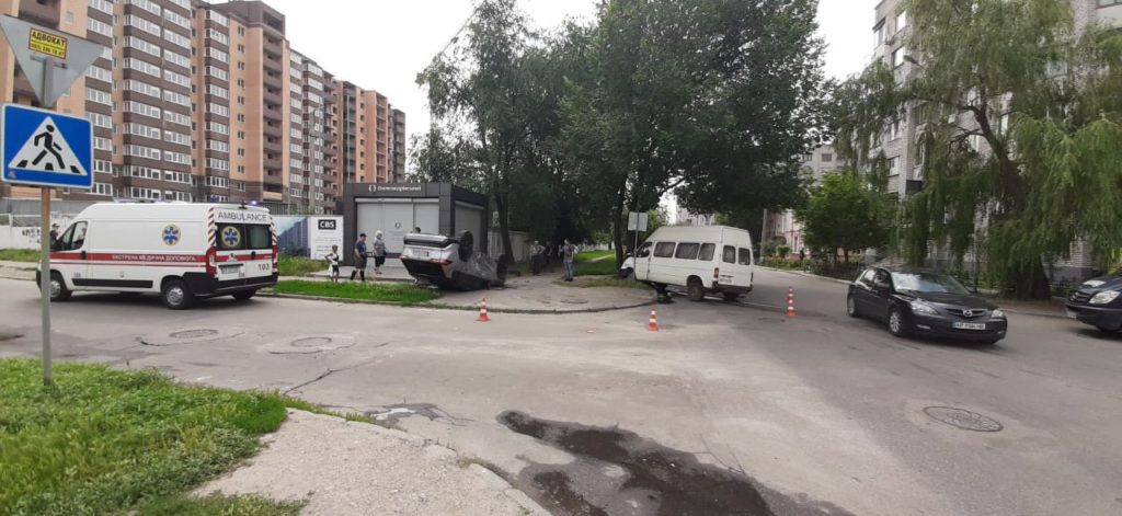 В результаті ДТП Toyota перекинулася на дах, а мікроавтобус врізався в дерево.