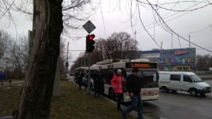 Перед плотиной образовалась “тянучка” с двух сторон. На остановках стоят толпы людей.