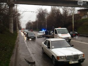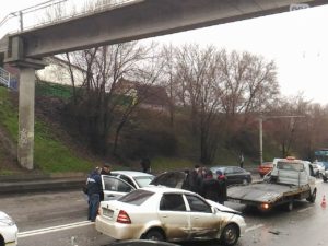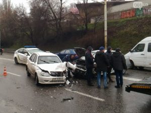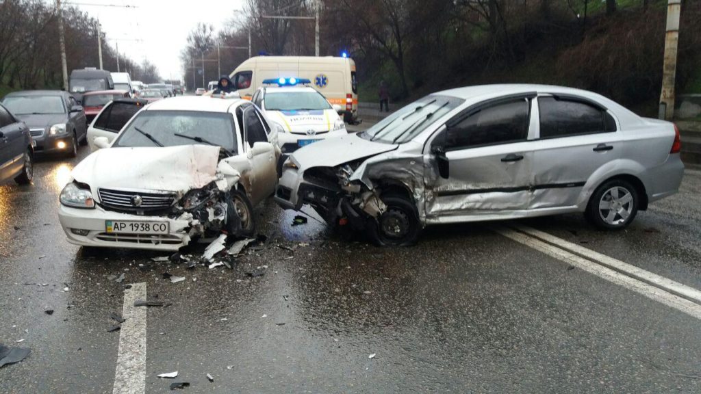 На подъеме под мостом в районе стадиона “Торпедо” автомобиль Chevrolet Aveo c маленьким ребенком выехал на полосу встречного движения и совершил столкновение с другим Chevrolet под управлением 42-летней женщины и ЗАЗ Славута, где водителем был 27-летний парень. «Славуте» удалось удержать равновесие, а вот Chevrolet с двумя женщинами от сильного столкновения тоже вылетел на полосу встречного движения и врезался «в лоб» с автомобилем Geely. За рулем Geely находилась 28-летняя девушка.