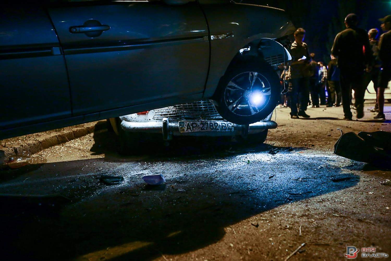 Как пишет сайт “Вся Власть”, автомобиль “Хюндай”, который мчался на скорости свыше 100 километров в час, резко повернул и, не сумев справиться с управлением, налетел на припаркованные “Жигули” и “Запорожец”. Если вторую машину зацепило совсем немного, то “Жигули” с “Хюндаем” столкнулись лоб в лоб. Иномарка была полностью смята (детали авто разлетелись на 15 метров вокруг), пострадавшего пассажира “Хюндая” забрала скорая помощь.