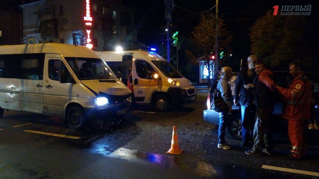 Авария произошла сегодня, 12 октября, на проспекте Соборном в районе бульвара Шевченко около половины седьмого вечера. Там столкнулись пассажирское маршрутное такси и два легковых автомобиля.