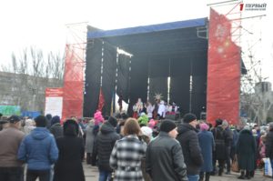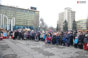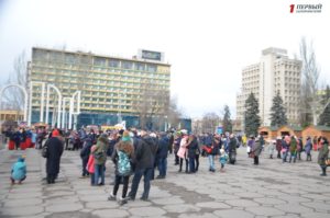 Отметим, что на главной площади Запорожья собрались несколько сотен жителей города: от самых маленьких до самых старших.