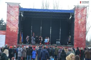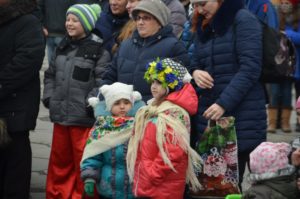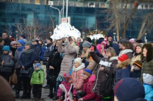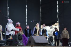 Также отметим, что большинство маленьких актеров играли “честно”. Но была и такая группа колядников, которые выступали под “фанеру”. Весь номер детишек из музыкальной школы №1 был предварительно записан и смонтирован, но это не помешало им получить заслуженные апплодисменты.