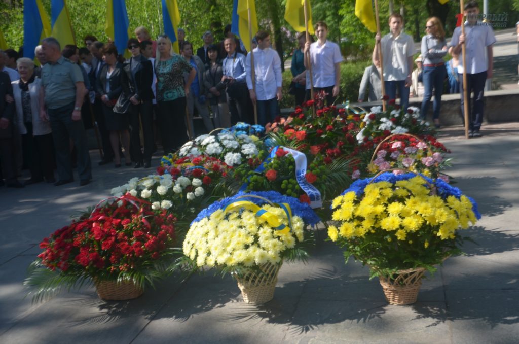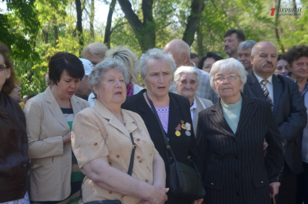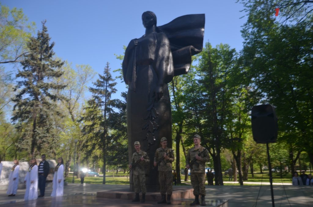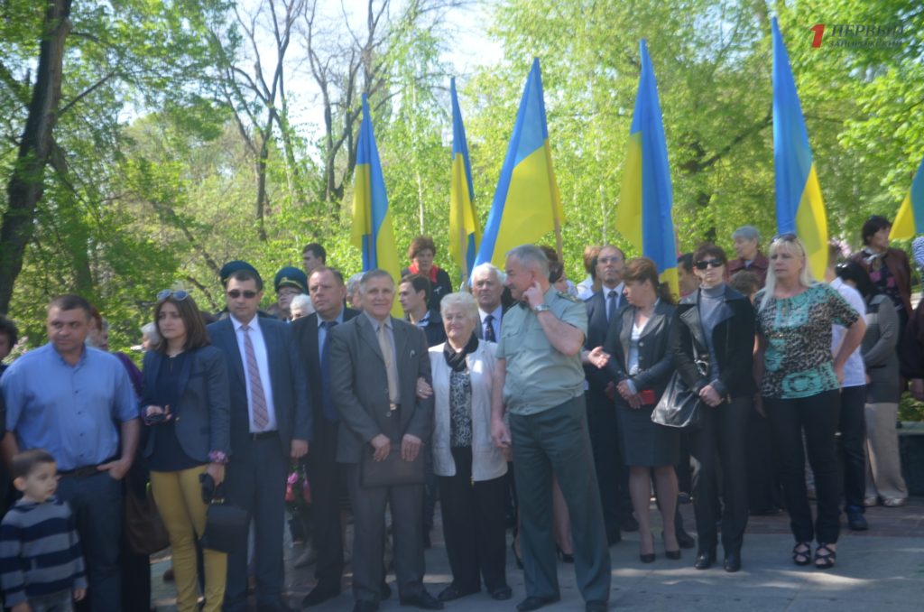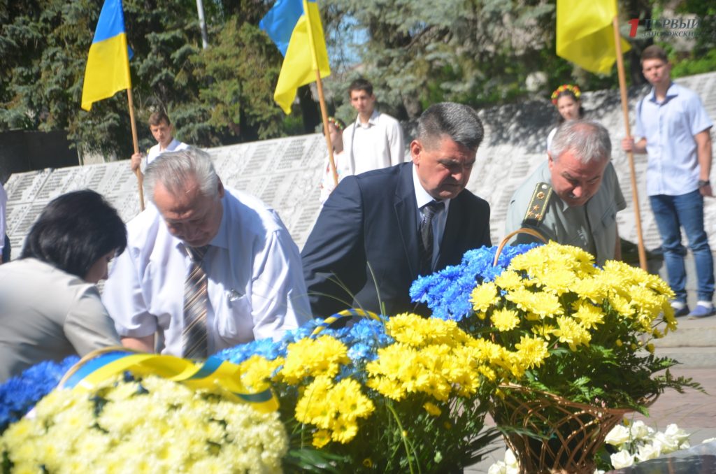 Около мемориала, расположенном в Днепровском районе города, собрались сотни запорожцев – представители власти, военные, ветераны, студенты, школьники, общественные активисты и просто неравнодушные запорожцы.