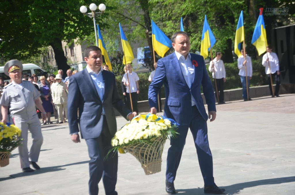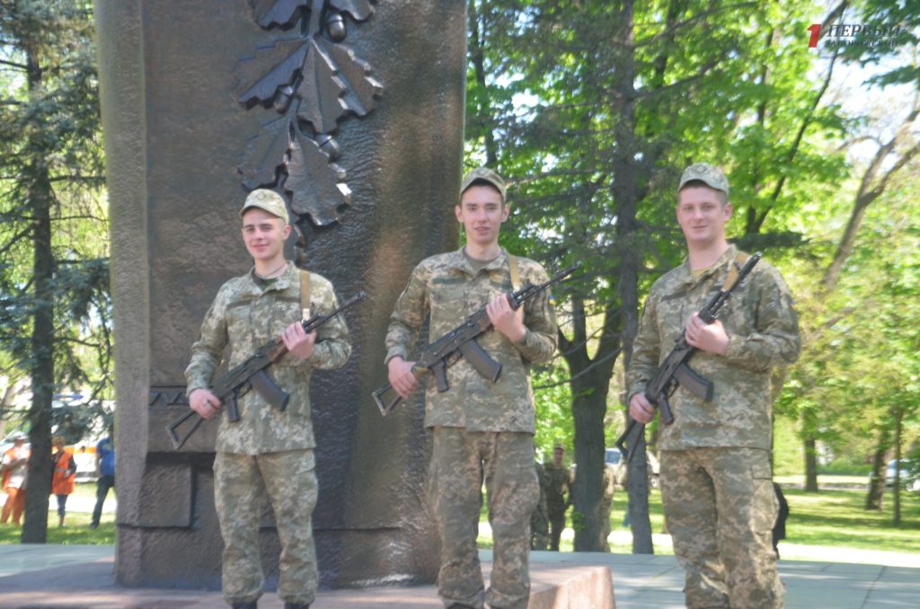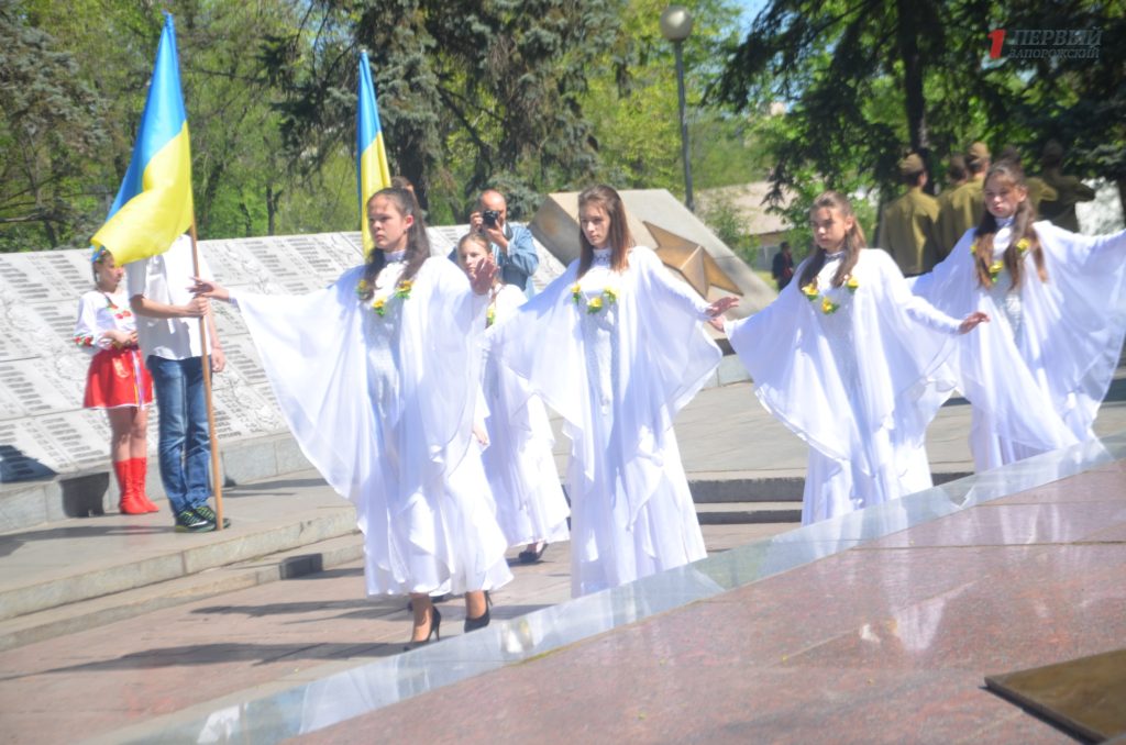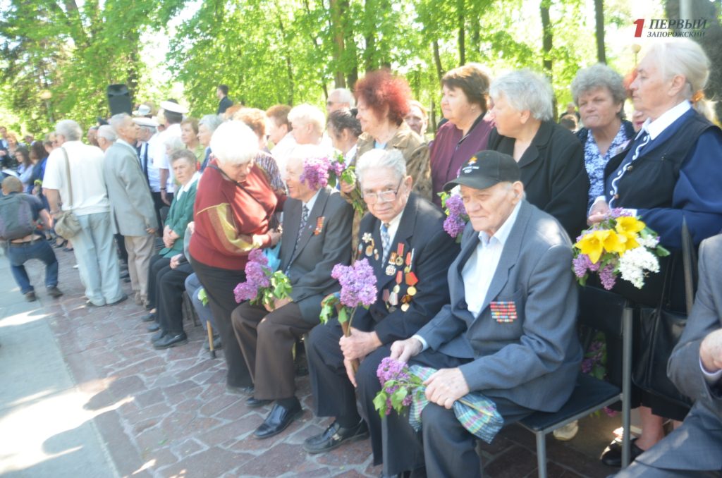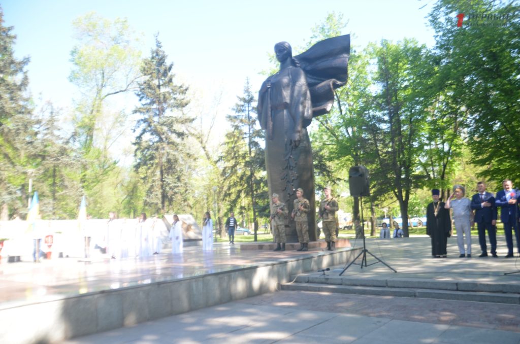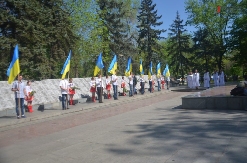 Около мемориала, расположенном в Днепровском районе города, собрались сотни запорожцев – представители власти, военные, ветераны, студенты, школьники, общественные активисты и просто неравнодушные запорожцы.