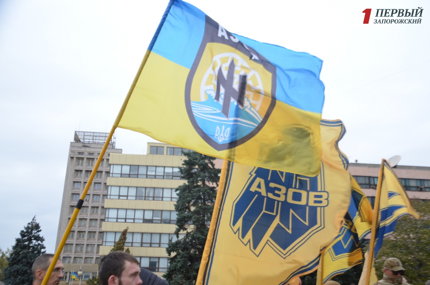 На площади развернули флаги национального корпууса”Азов”, национальные флаги Украины и Грузии.