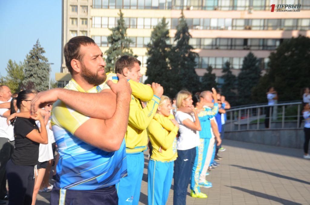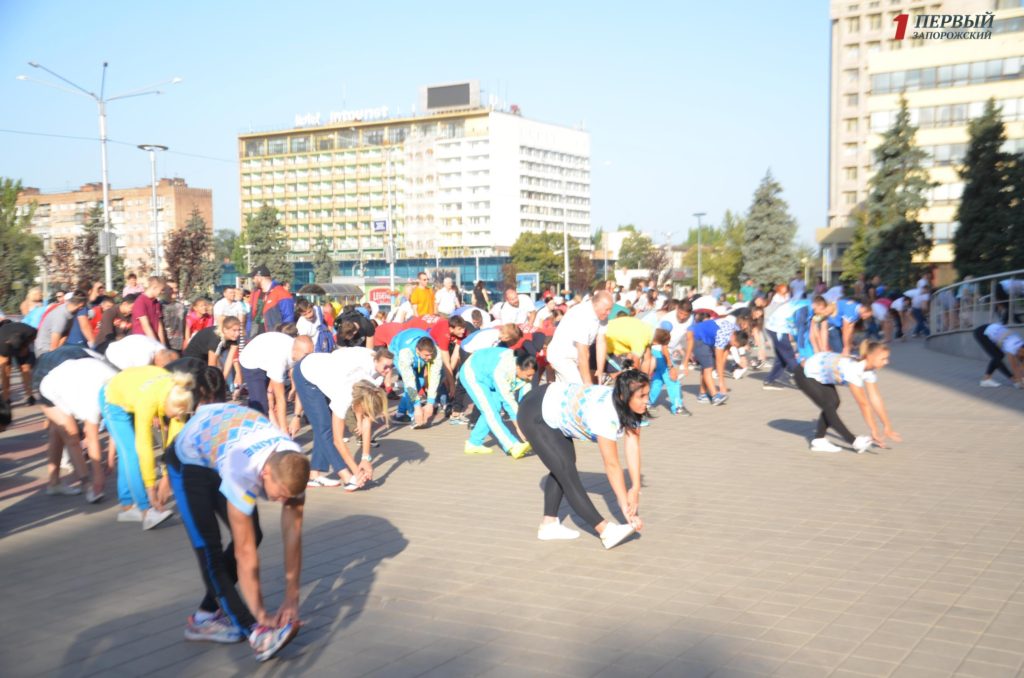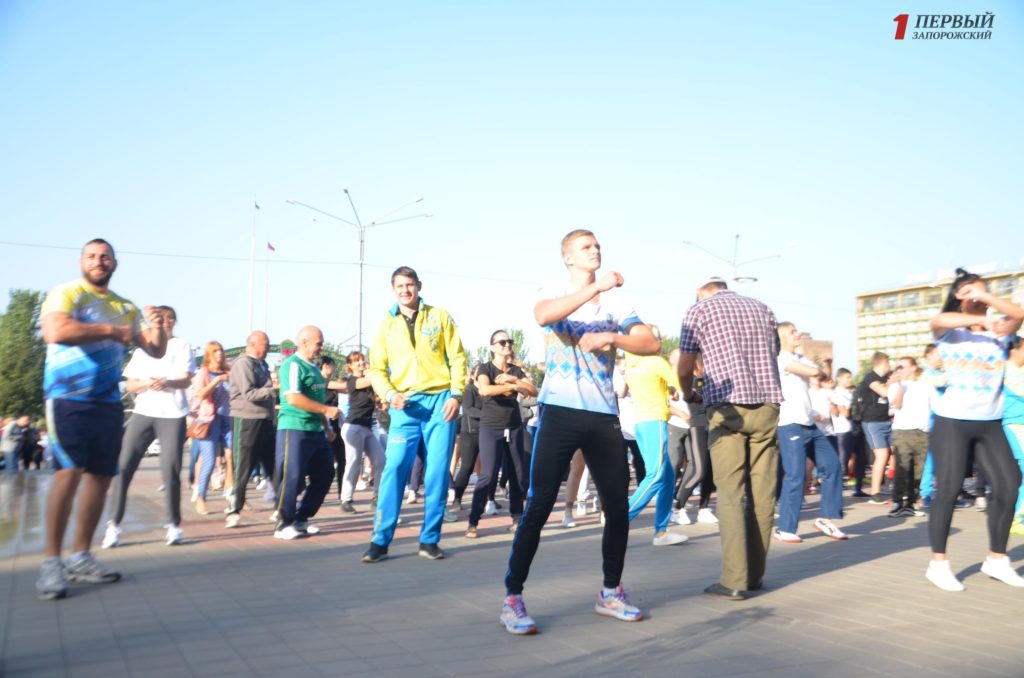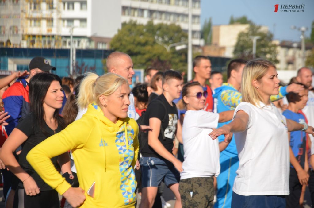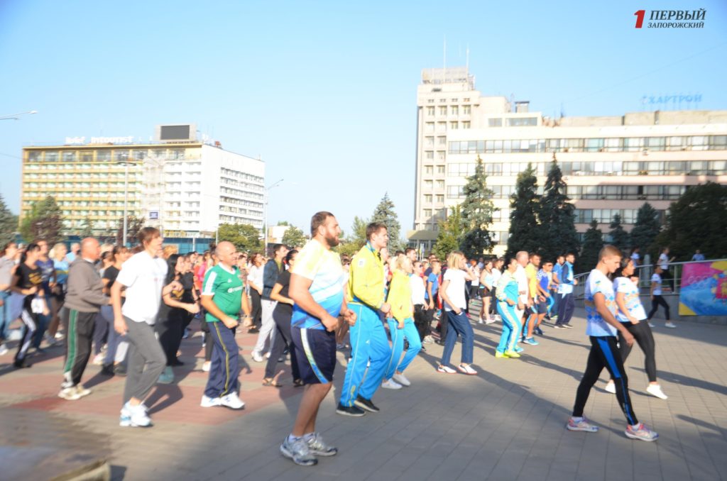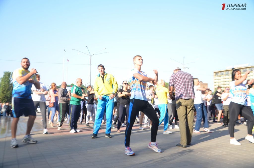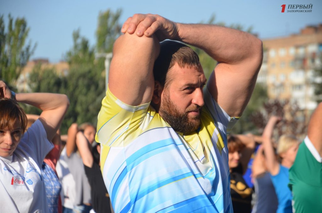 Отметим, что всего к выполнению подвижных упражнений присоединились несколько сотен активных запорожцев. Зарядка проходила под контролем Олимпийской чемпионки Ольги Стражевой, поэтому участники и не думали “халтурить”.