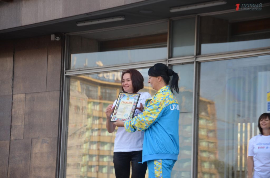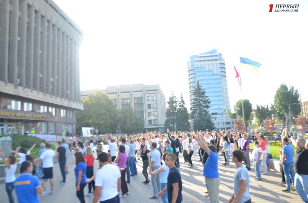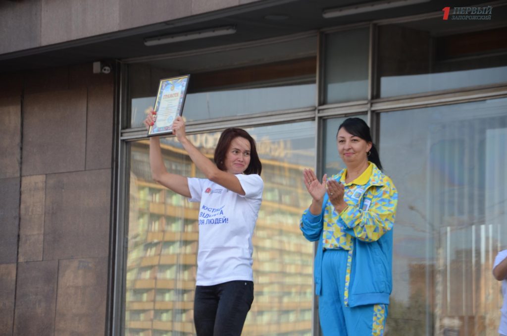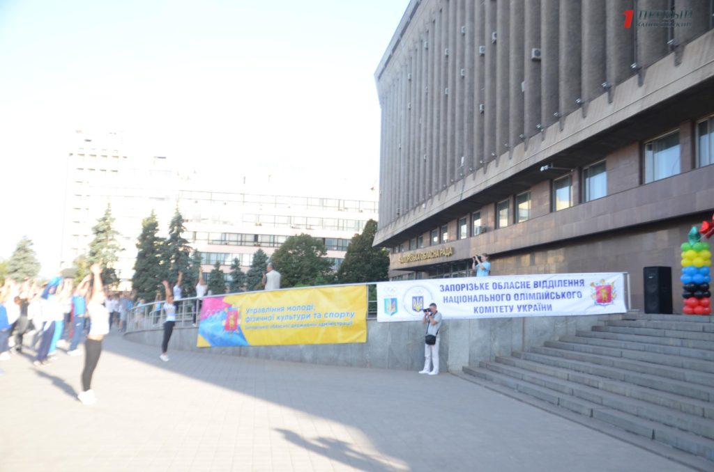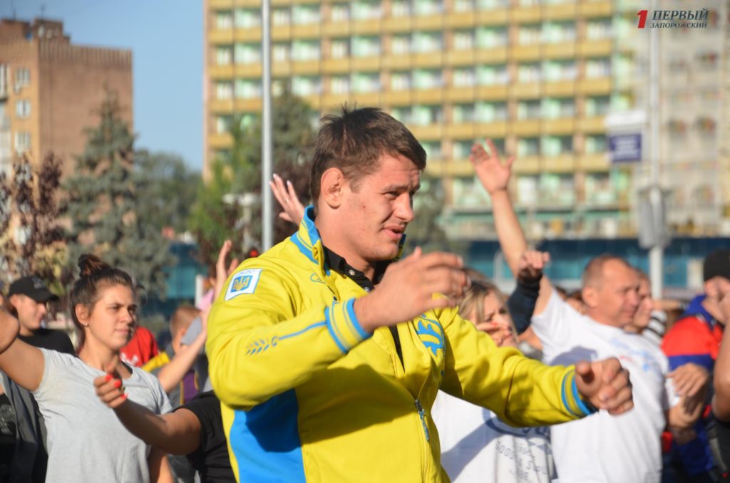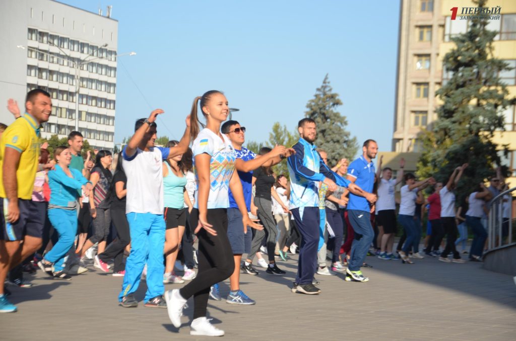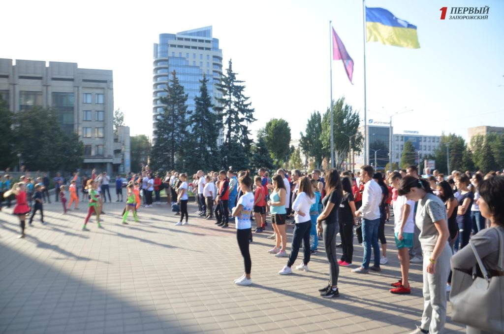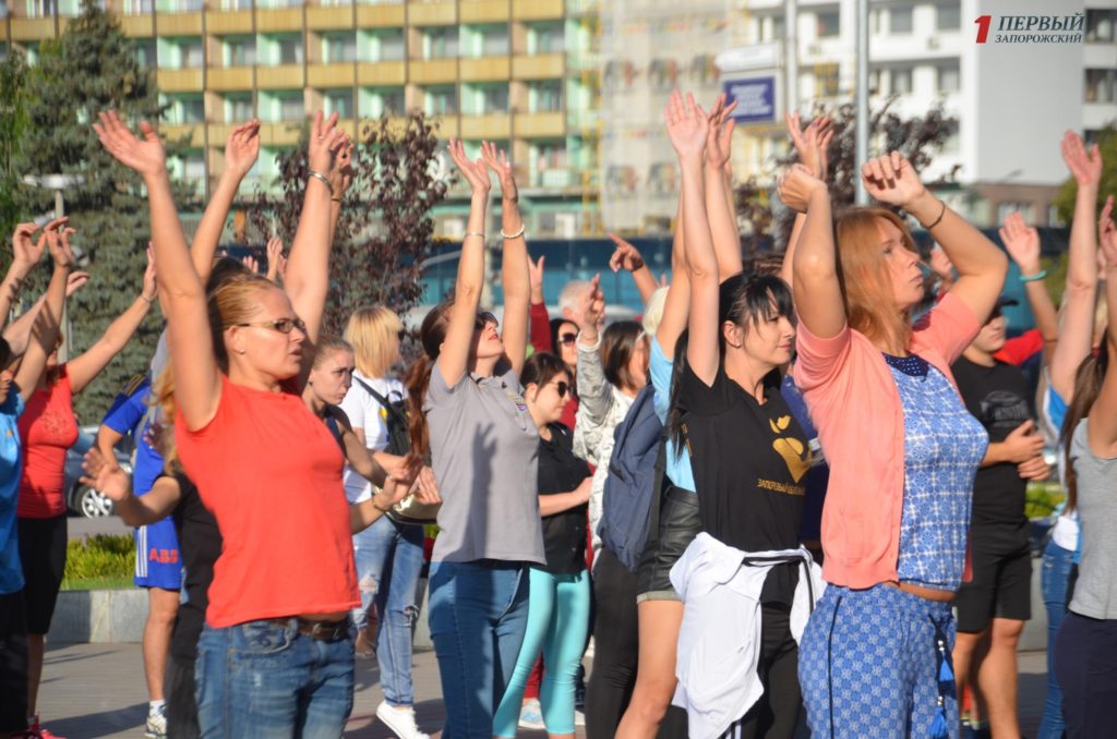 Отметим, что всего к выполнению подвижных упражнений присоединились несколько сотен активных запорожцев. Зарядка проходила под контролем Олимпийской чемпионки Ольги Стражевой, поэтому участники и не думали “халтурить”.