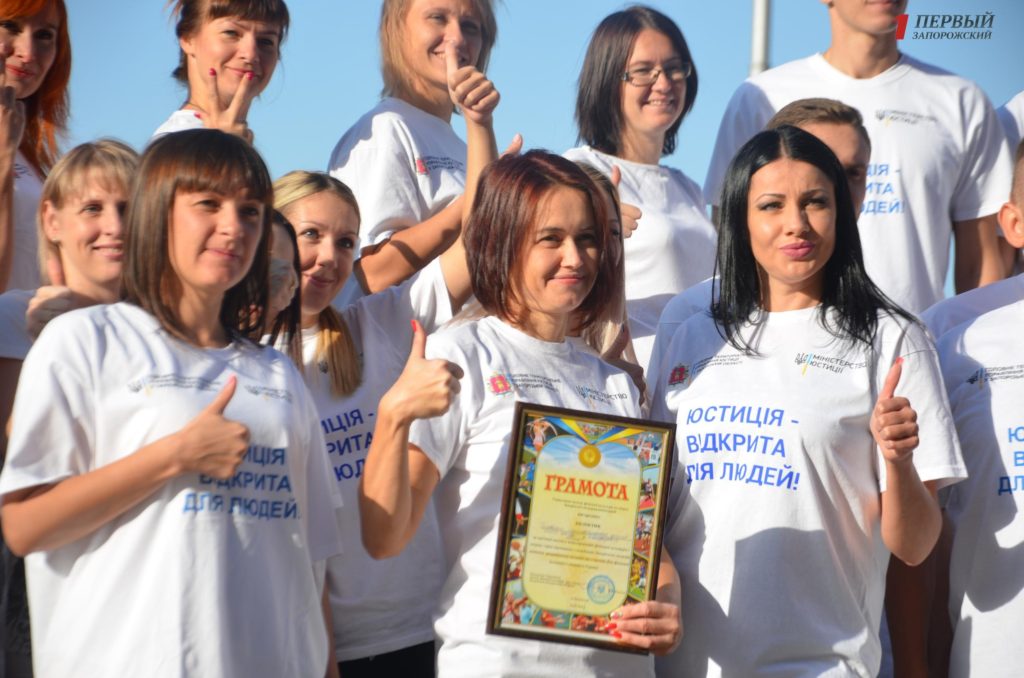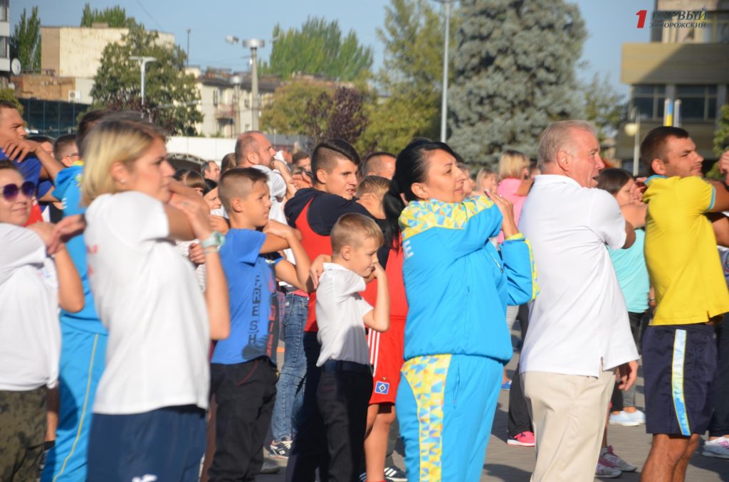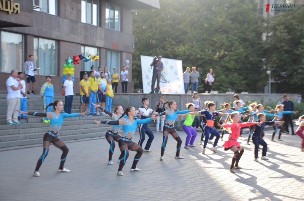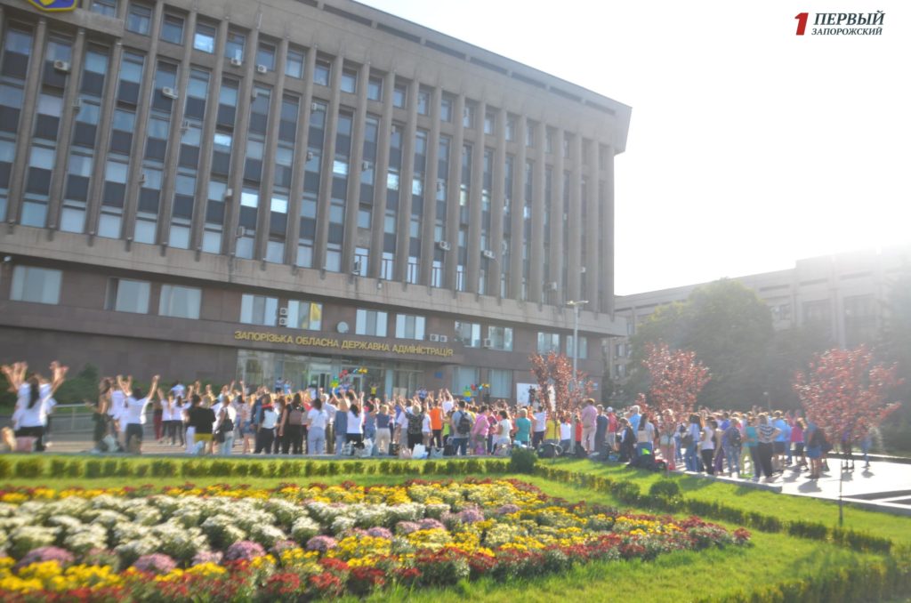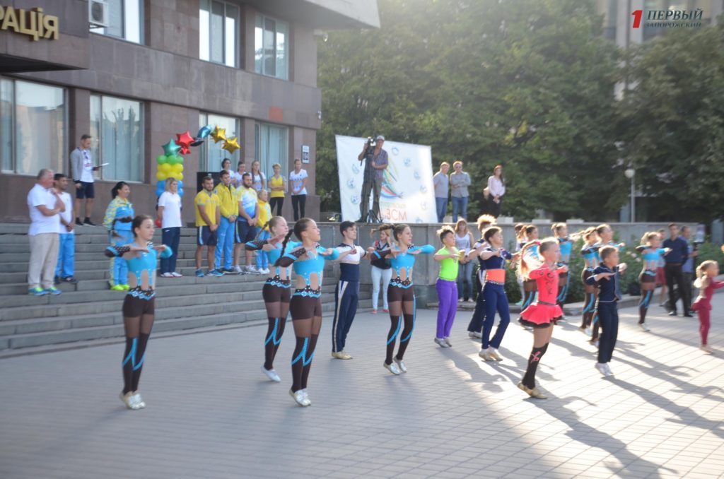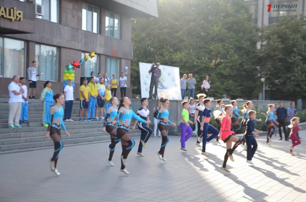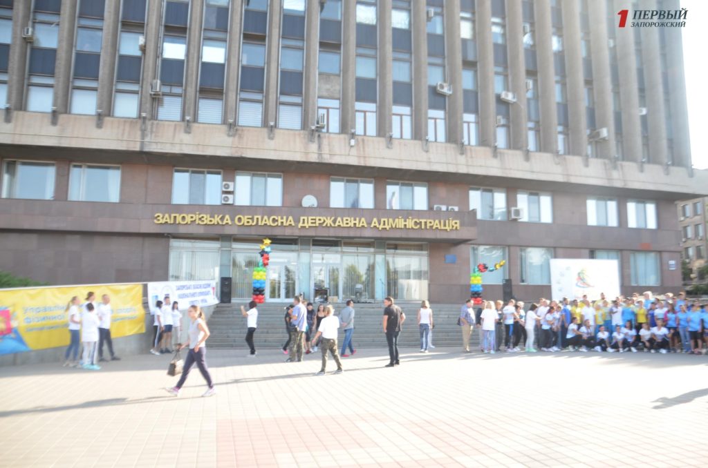 Отметим, что всего к выполнению подвижных упражнений присоединились несколько сотен активных запорожцев. Зарядка проходила под контролем Олимпийской чемпионки Ольги Стражевой, поэтому участники и не думали “халтурить”.