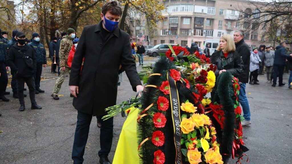 Поховали Івана Залужного на Осипенківському цвинтарі. На могилу ветерана поклали квіти, жалобні вінки, у тому числі вінок від Президента України.