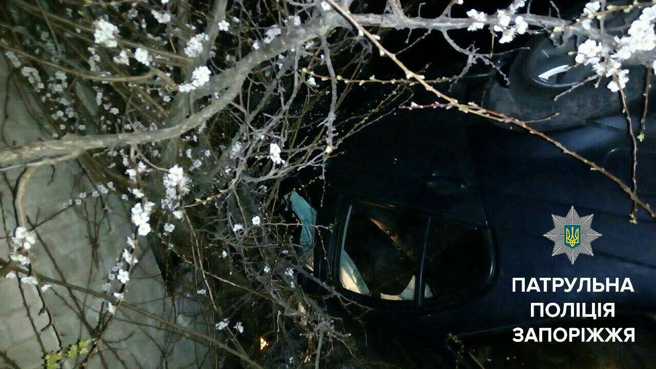 В Запорожье пьяный водитель на BMW врезался в дерево - ФОТО