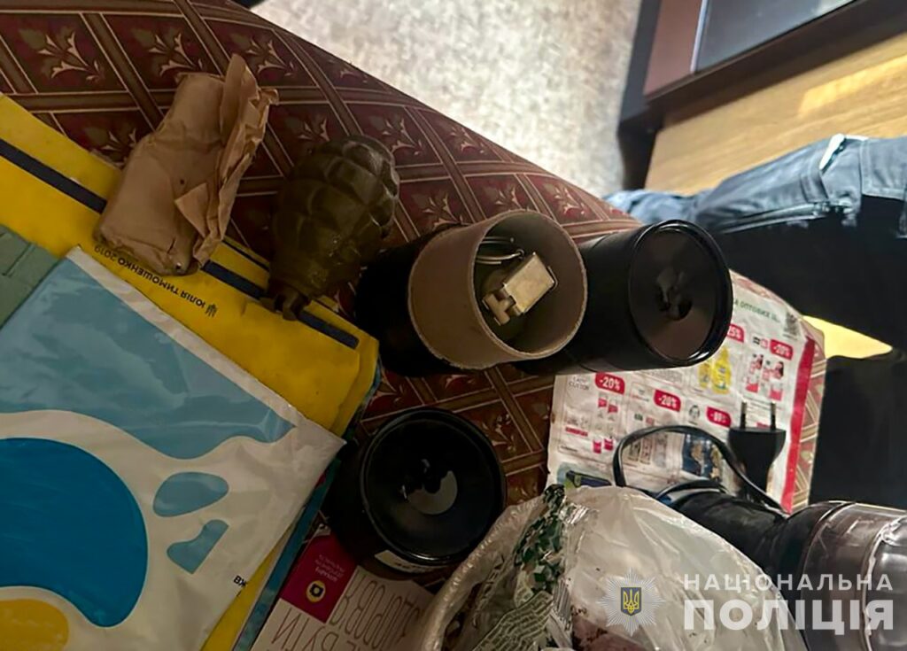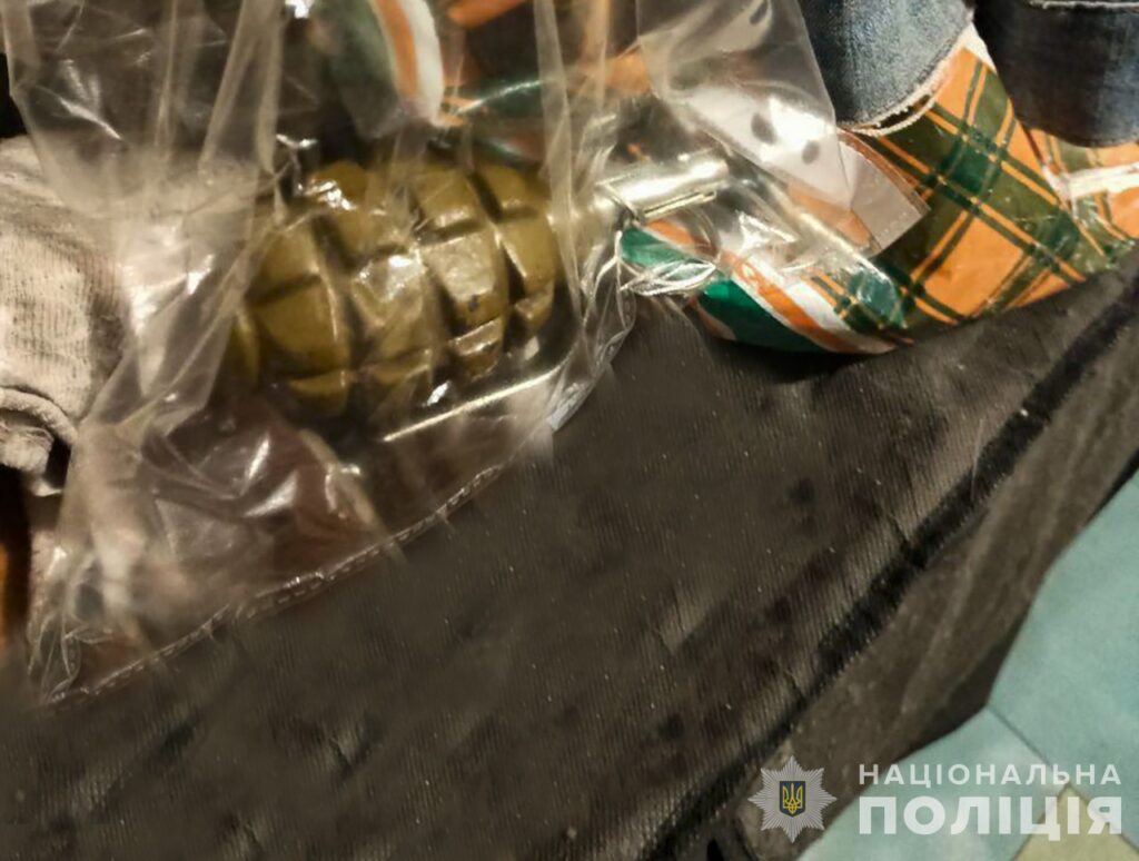 Правоохоронці, що прибули на виклик, затримали зловмисника. За місцем мешкання фігуранта правоохоронці провели обшук й вилучили гранату Ф-1, дві гранати РГД – 5 й три запали до них.