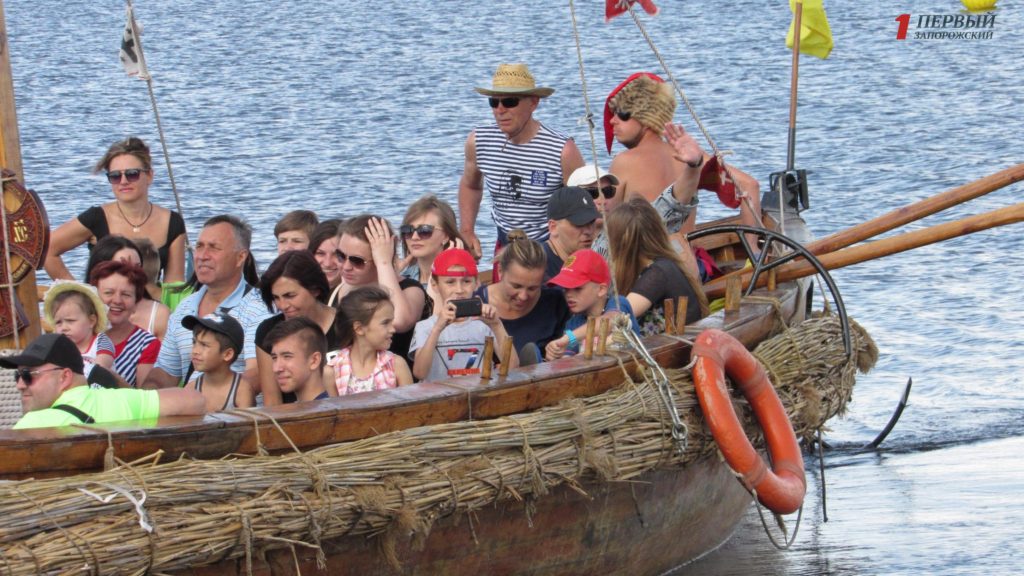 Примечательно, что многие запорожцы очень хотели покататься на казацкой чайке, поэтому терпеливо ожидали своей очереди.