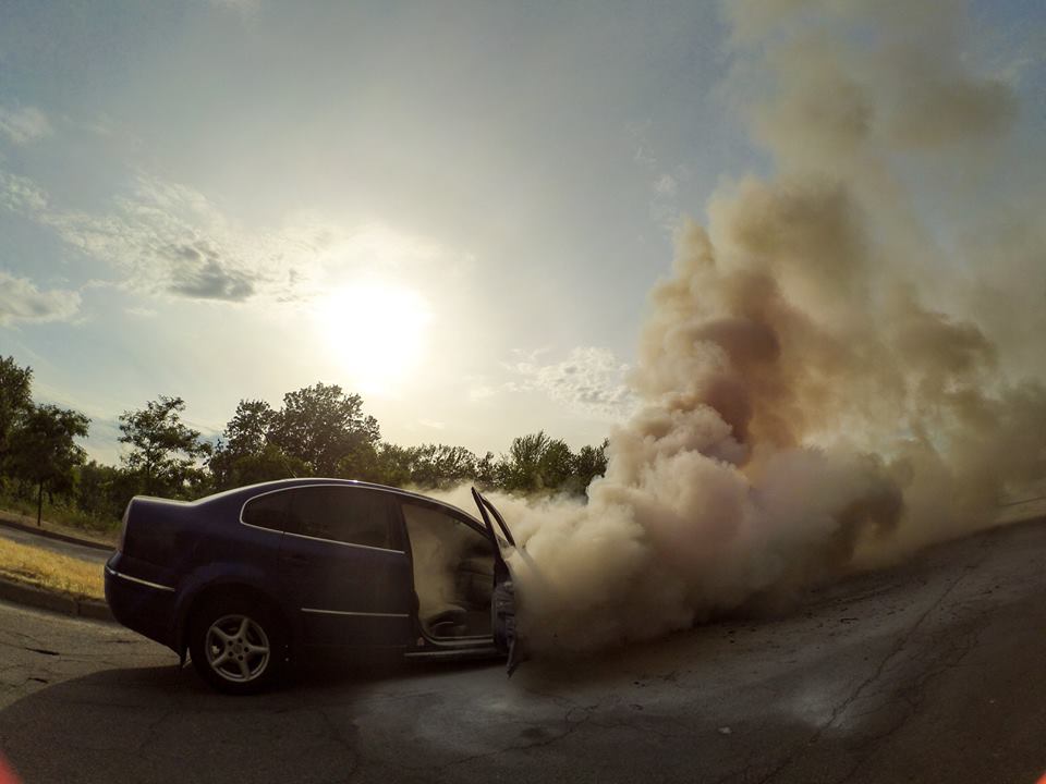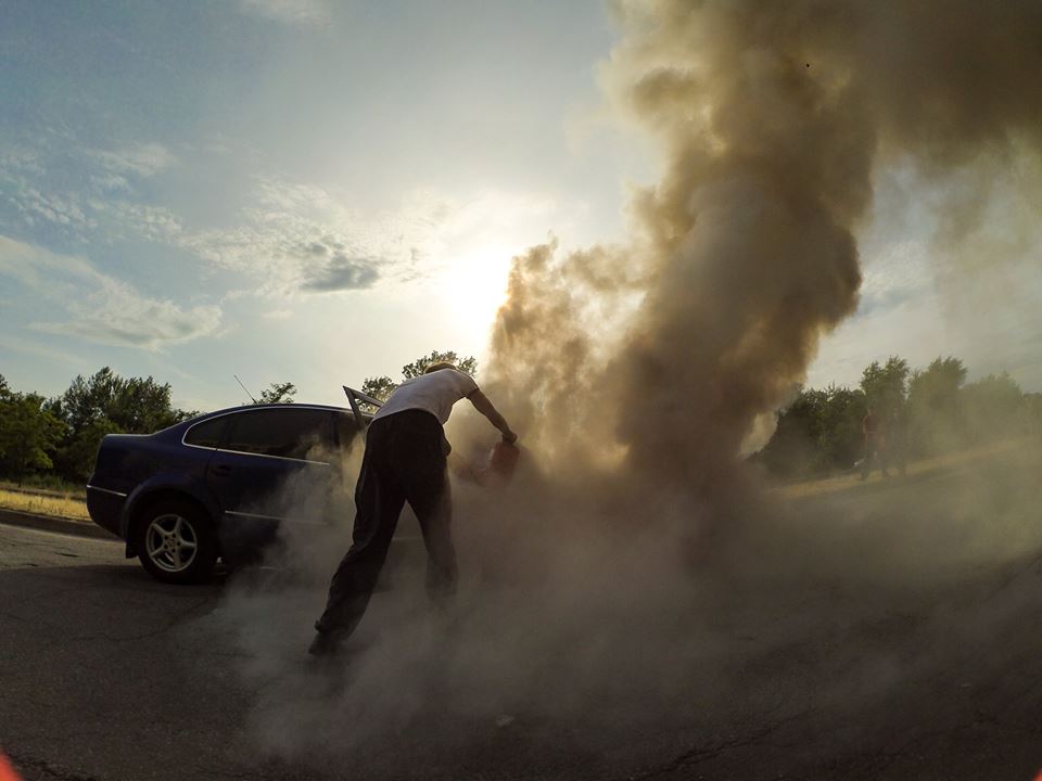 Так, во время движения загорелся автомобиль Volkswagen Passat. По словам очевидца, очаг возгорания находился под капотом.