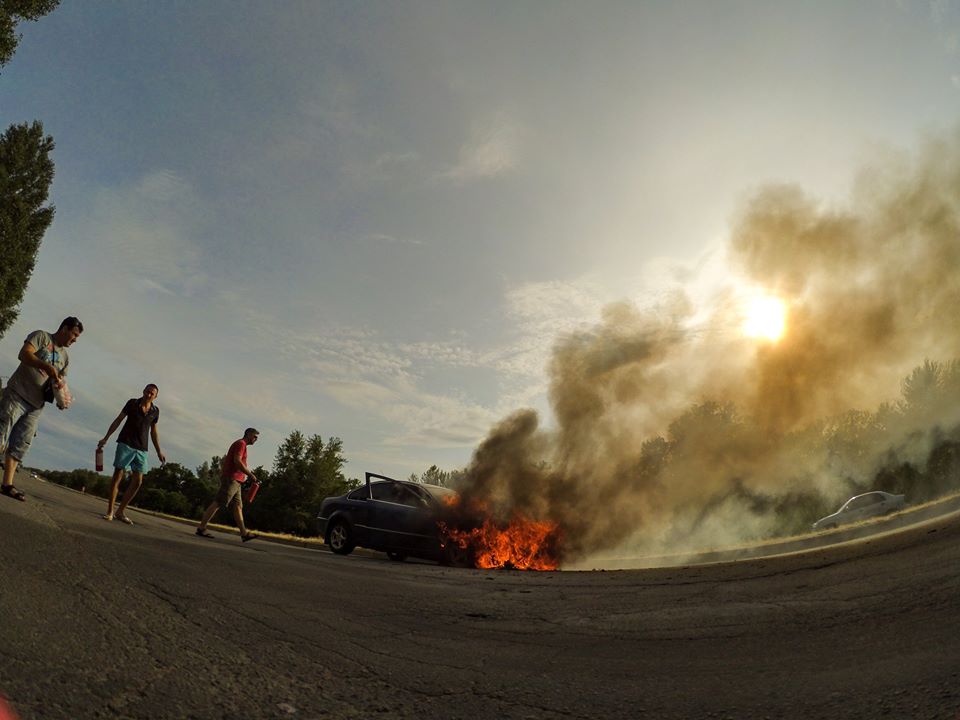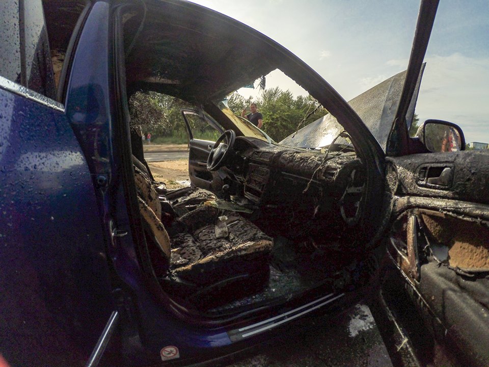 Игорь Фриц также отметил, что проезжавшие мимо автомобилисты пытались потушить огонь: было потрачено около десяти огнетушителей, а интенсивность горения только возрастала. К приезду пожарных в автомобиле уже воспламенился салон.