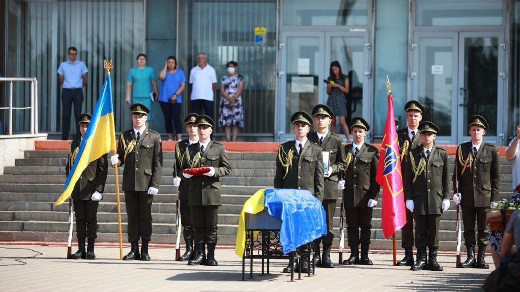 Присутні на жалобній церемонії пом’янули загиблого воїна хвилиною мовчання. На його честь військовий оркестр виконав гімн України. Проводжаючи в останню путь героя, теплі слова про нього сказали командири і бойові побратими. Вони попрохали вибачення у рідних загиблого, що не змогли зберегти його життя, та пообіцяли продовжувати звитяжну службу із захисту мирного неба над Україною.