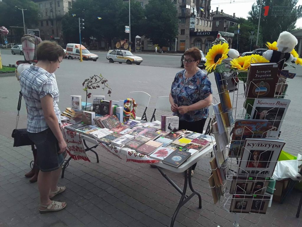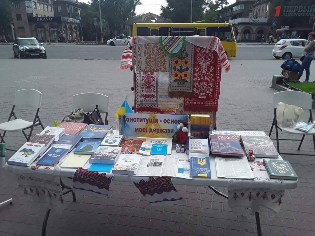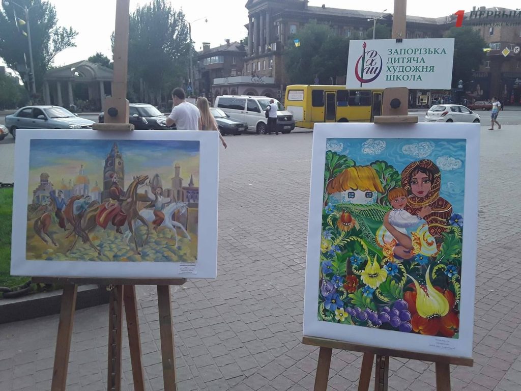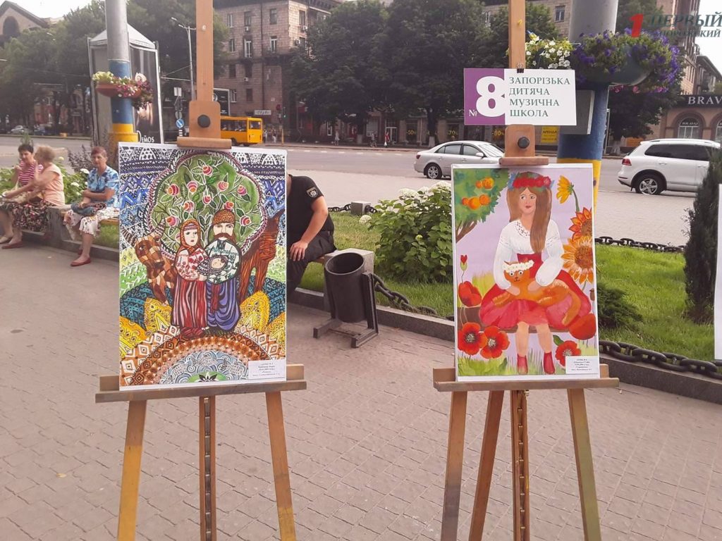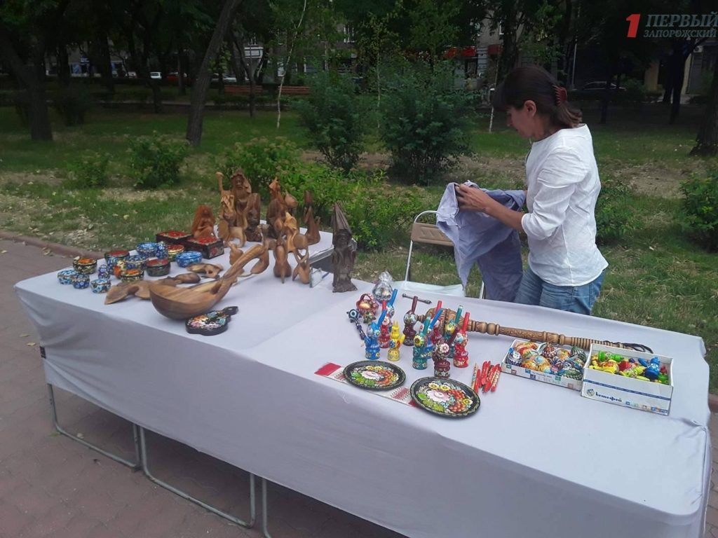 В течение всего праздничного вечера на территории площади работали различные тематические площадки. Запорожцы посмотрели разнообразные выставки: книг и периодических изданий, детского рисунка на мольбертах, изделий из дерева и многое другое.