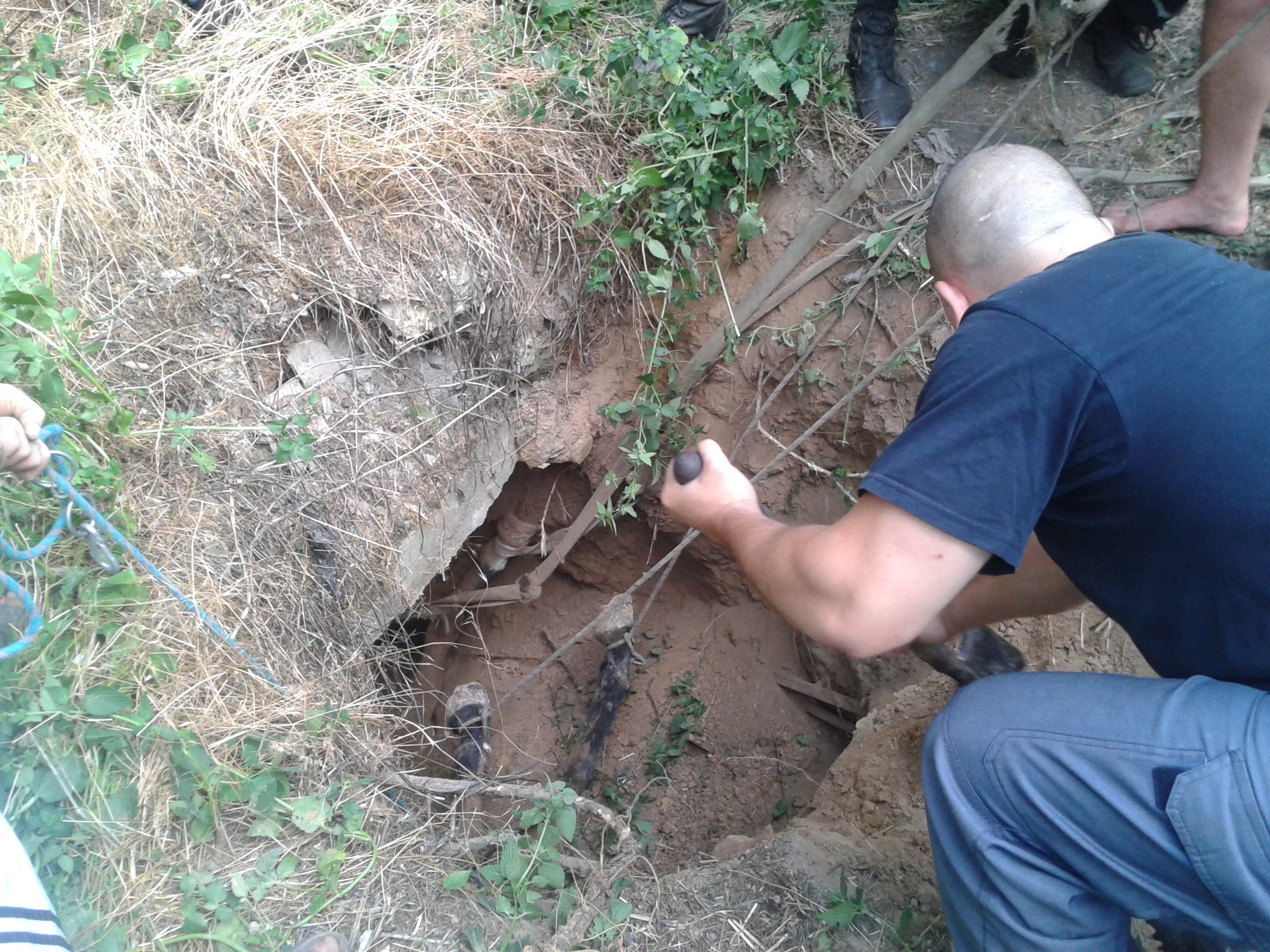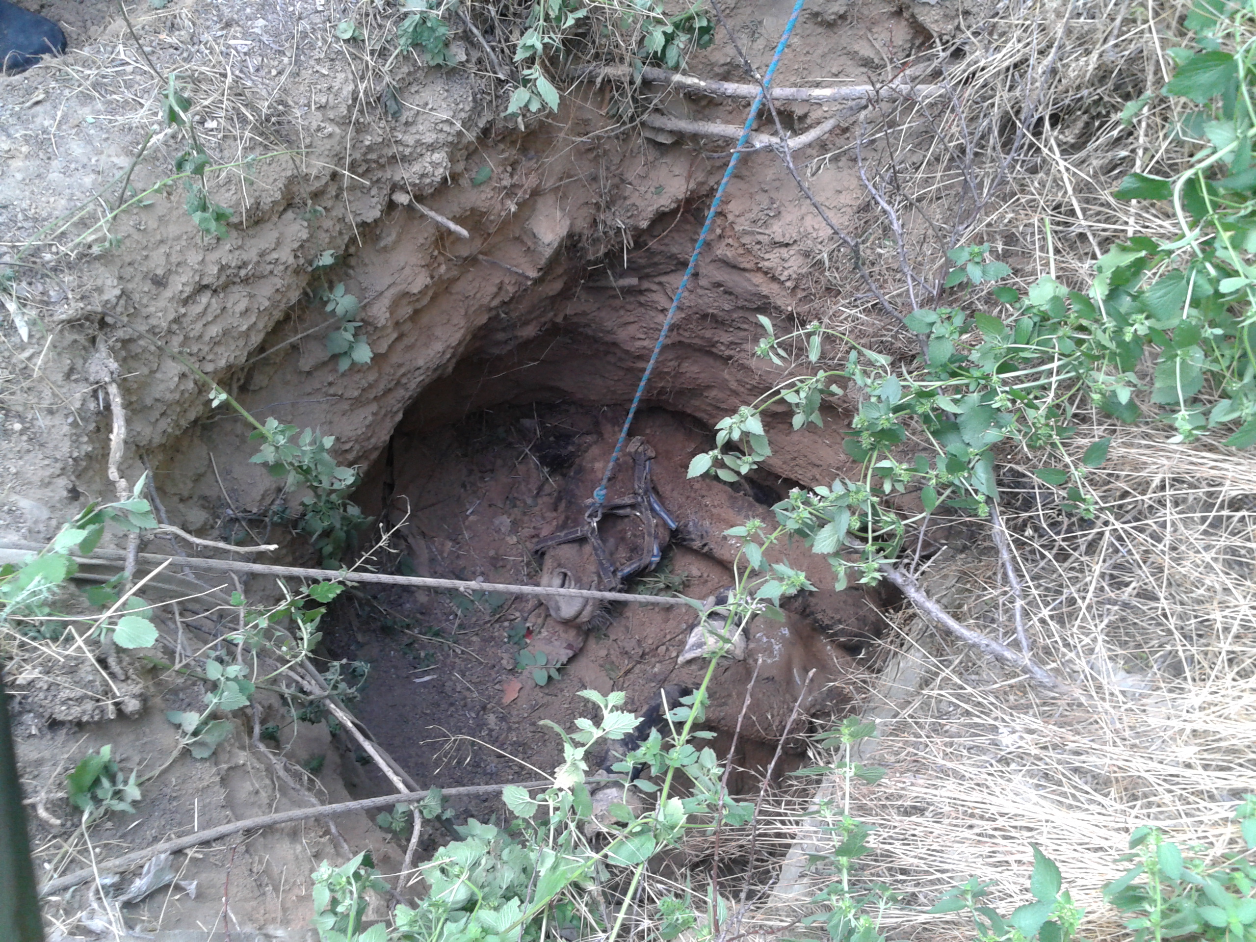 Сообщение о происшествии поступило в Службу спасения «101» в 16:10. Как выяснилось на месте происшествия, лошадь упала в яму глубиной примерно 2-2,5 метра, самостоятельно встать не могла.