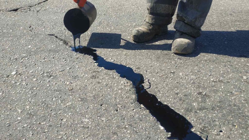 У Запоріжжі заливають бітумом тріщини на дорогах.