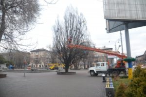 Сегодня, 12 декабря, коммунальные службы города начали подготавливать площадь Маяковского к новогодним и рождественским праздникам.