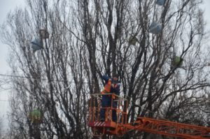 Вслед за площадью Фестивальной коммунальщики украшают площадь Маяковского. Сегодня там подключают новогоднюю иллюминацию, украшают деревья новогодними шарами с подсветкой.