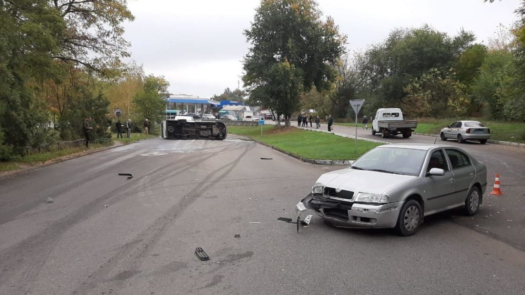 Вчера утром, 16 октября, в Запорожье на улице Чаривной в результате ДТП перевернулась маршрутка.