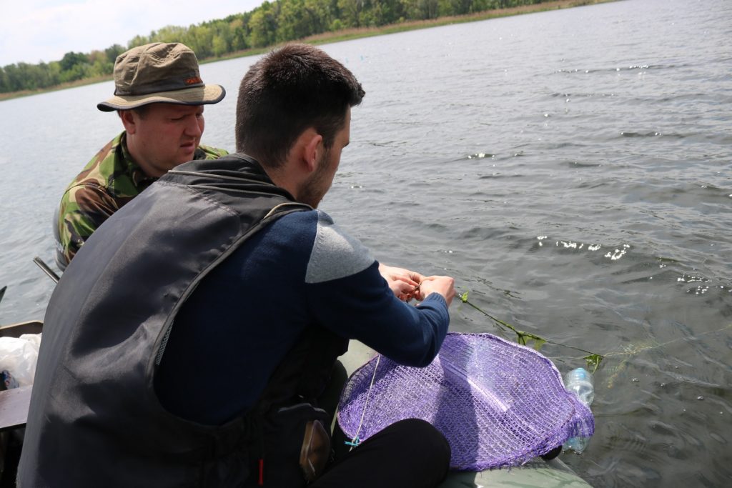 В мае специалисты Украинского общества охотников и рыболовов установили 1200 нерестилищ, в том числе 100 изготовленных школьниками, в реке Днепр, в заливе у населенного пункта Отрадное.