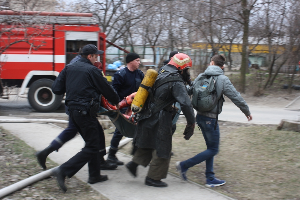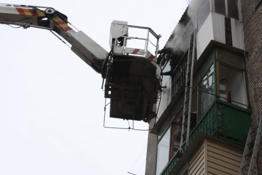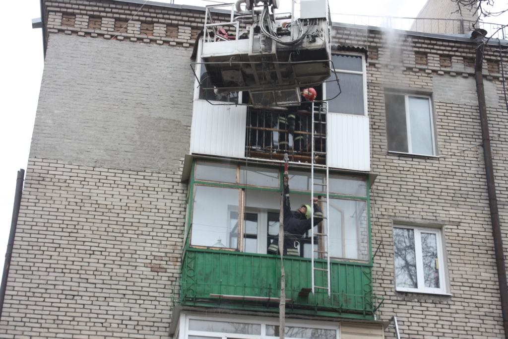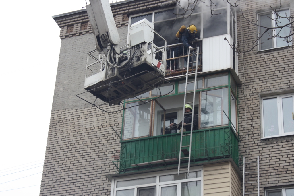 Прибыв на место происшествия спасатели установили, что из окон квартиры на последнем этаже дома идет дым, а на балконе находятся люди, которые зовут на помощь.