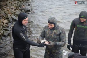 Помимо зарыбления, водолазы Областной федерации подводной охоты, дайвинга и рыболовства провели очистку реки. Со дна Днепра было поднято порядка 500 килограмм мусора.