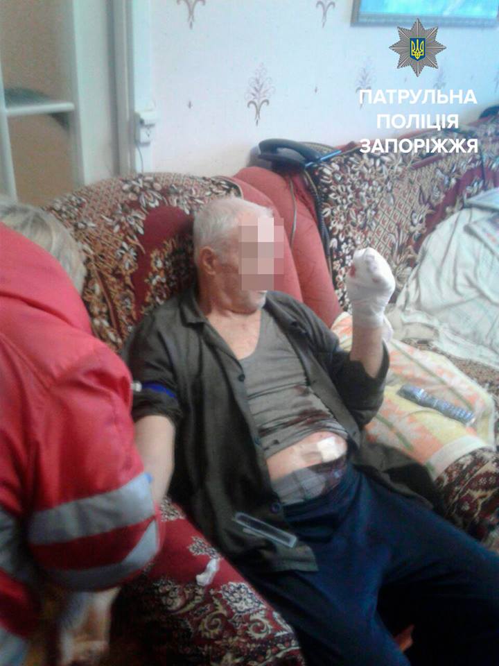 Как сообщает пресс-служба запорожской патрульной полиции, в результате взрыва 74-летний мужчина получил осколочные ранения в живот и руку.