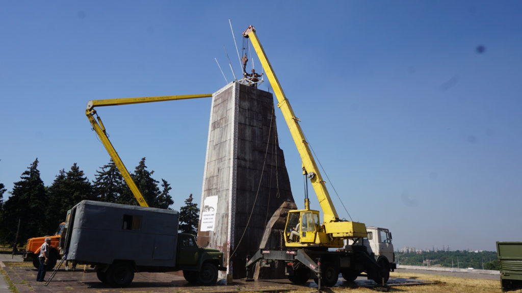 Сейчас на площади Запорожская (бывшая пл.Ленина) коммунальшики устанавливают флагшток на верхушке постамента, на котором раньше находился “вождь пролетариата”.