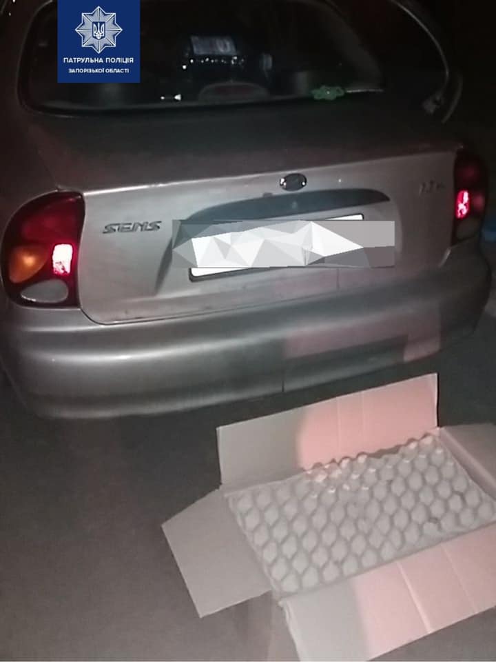 Увага патрульних поліцейських привернув автомобіль Daewoo Sens, який швидко рухався, порушуючи правила дорожнього руху. Правоохоронці зупинили автомобіль: в салоні знаходилося п’ять чоловік. Під час поверхневої перевірки авто в багажнику поліцейські виявили 2 пакети з колбасними виробами і коробку яєць, в кількості приблизно 300 штук.